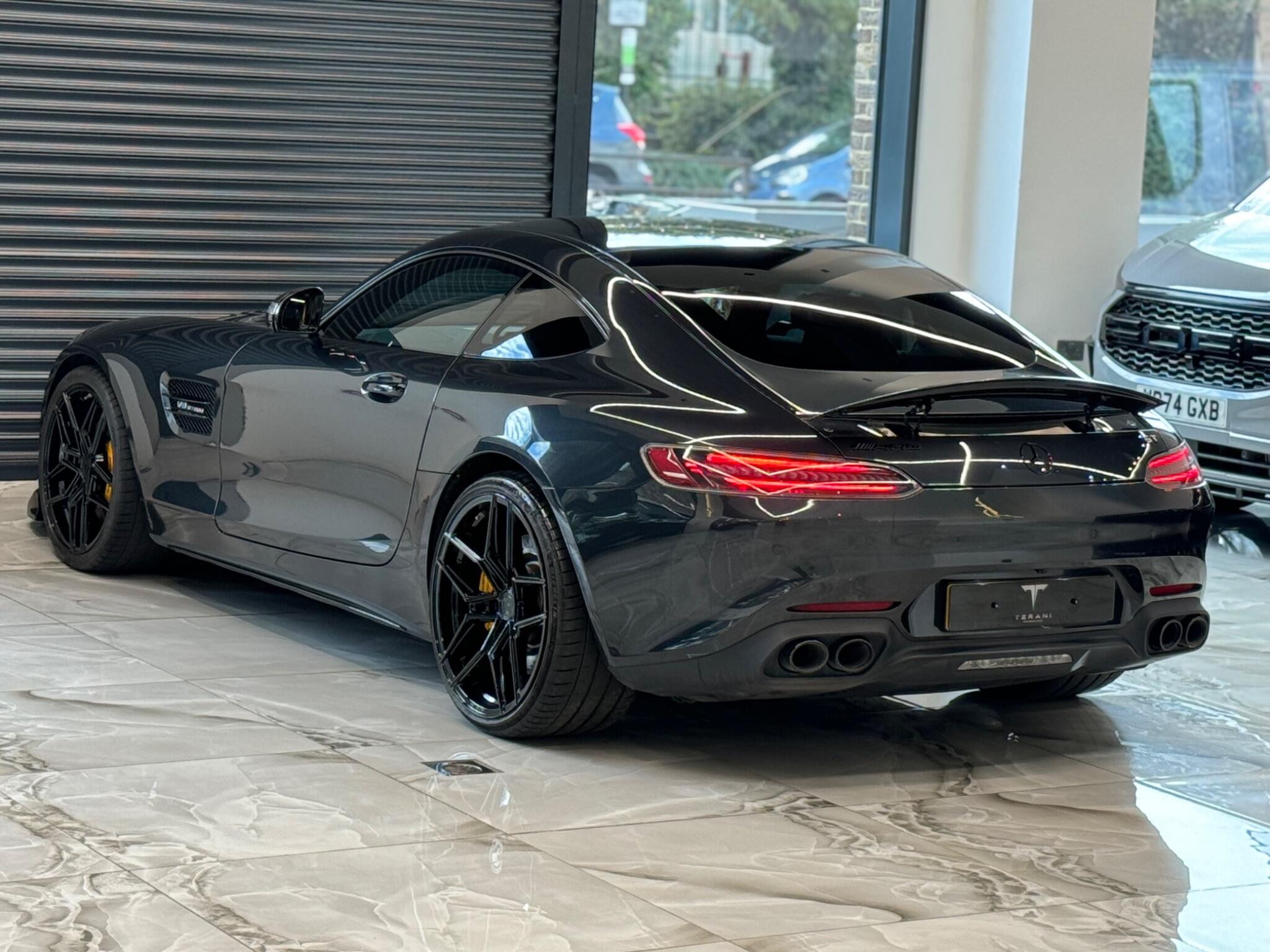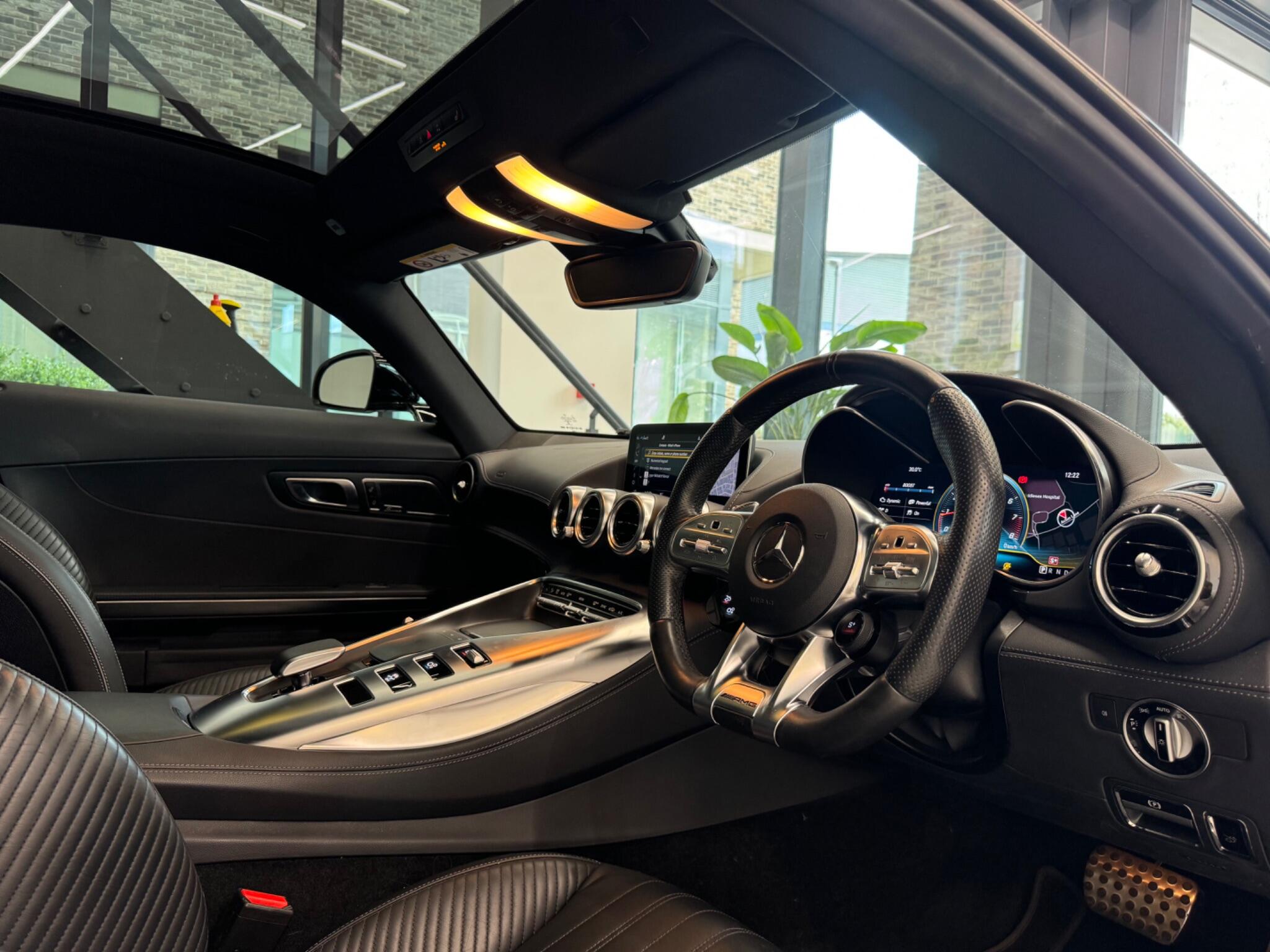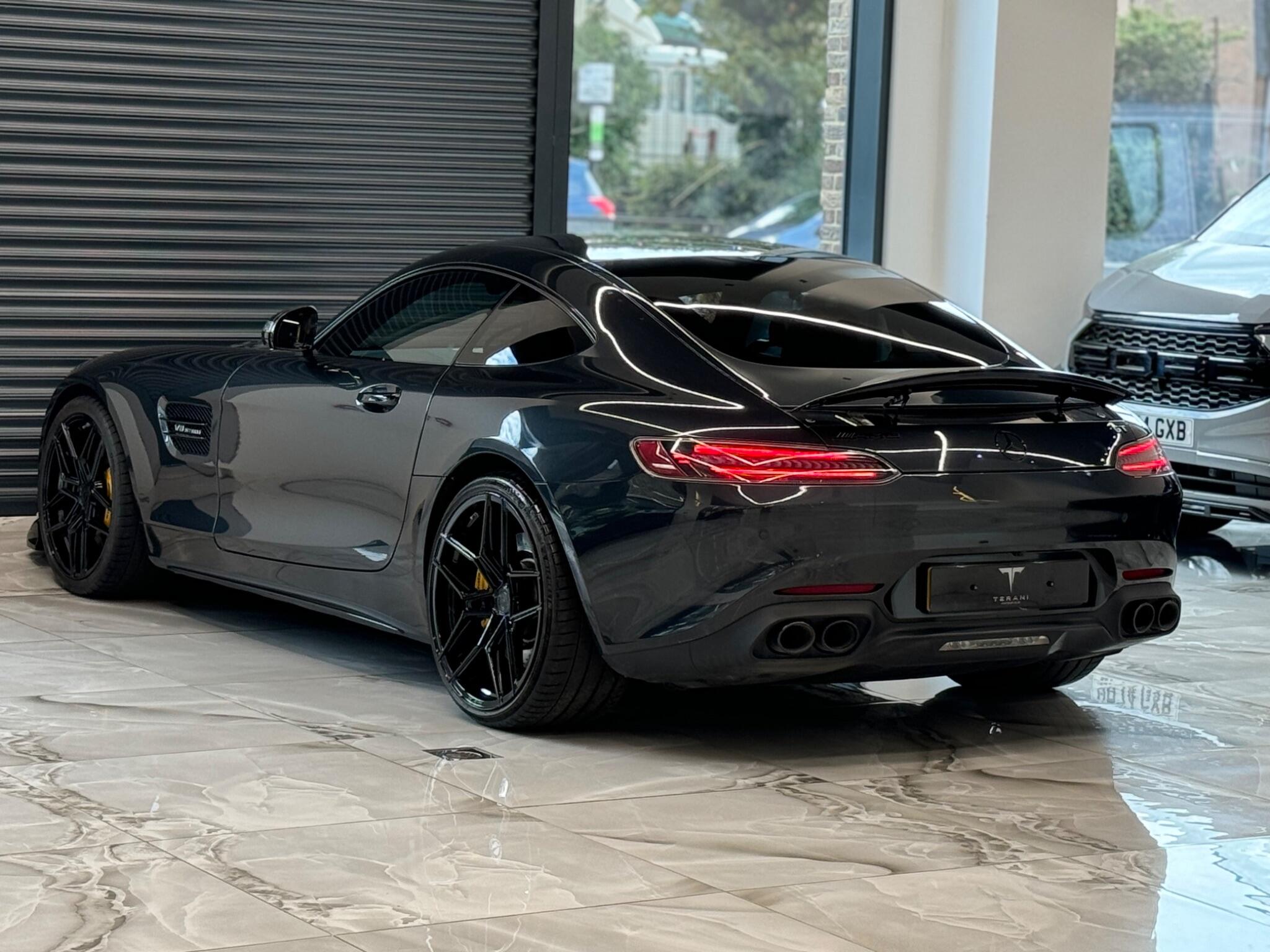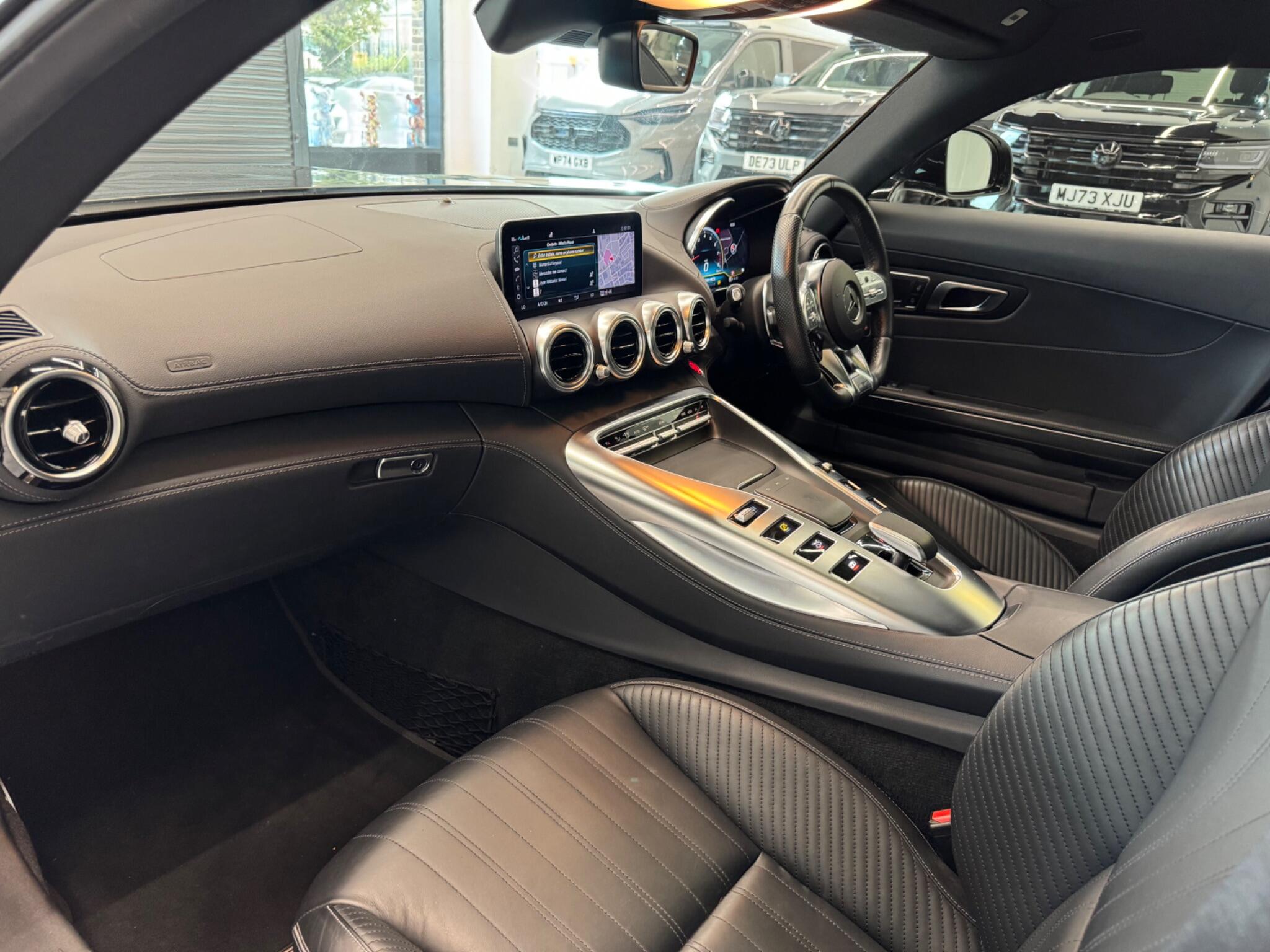 MASSIVE SPEC....18 MONTHS WARRANTY... UPGRADED CONCAVER WHEELS|BLACK EXTERIOR PACK|SPORT EXHAUST|FULL MB SERVICE HISTORY... ADDITIONAL TRACKER & IMMOBILISER FITTED This 2020 Mercedes-Benz AMG GT V8 BiTurbo offers exceptional provenance with a remarkably low mileage of just 18,250 miles. Powered by a potent 4.0L V8 BiTurbo petrol engine, this Euro 6 compliant model is finished in a sophisticated black and features exclusive Nappa leather upholstery. The Premium Equipment Line enhances the driving experience, incorporating a fixed panoramic sunroof and keyless entry for effortless access. For your convenience and safety, it is equipped with Parking Assist PARKTRONIC, providing front and rear sensors, and LED High Performance Headlamps with Adaptive Highbeam Assist. The AMG GT V8 BiTurbo truly excels with its performance, achieving a rapid 0-62mph acceleration in just 4.0 seconds, demonstrating its superior capability compared to many other vehicles. Further elevating the cabin ambiance is the impressive Burmester High-End Surround Sound System, ensuring an immersive audio experience. These carefully selected features combine to offer a refined and exhilarating driving proposition.