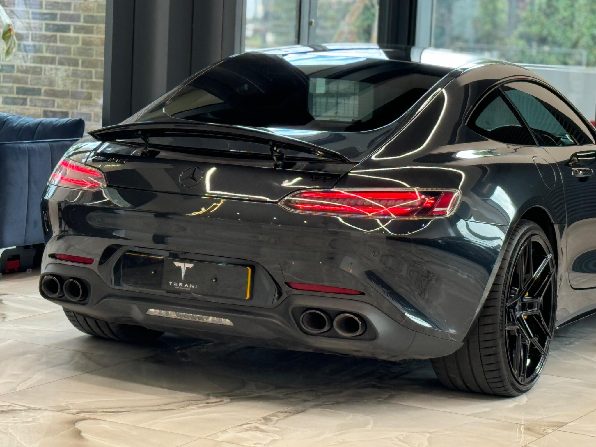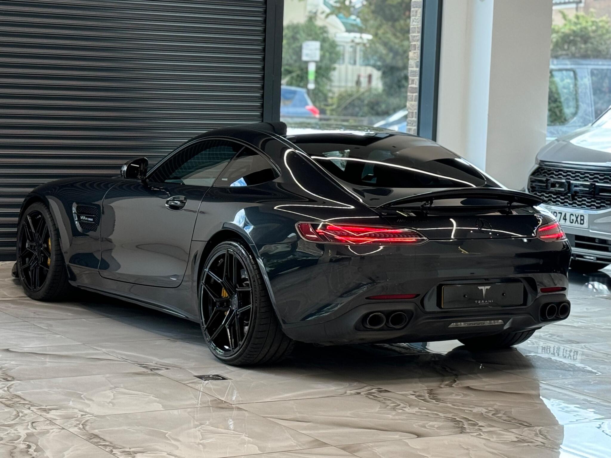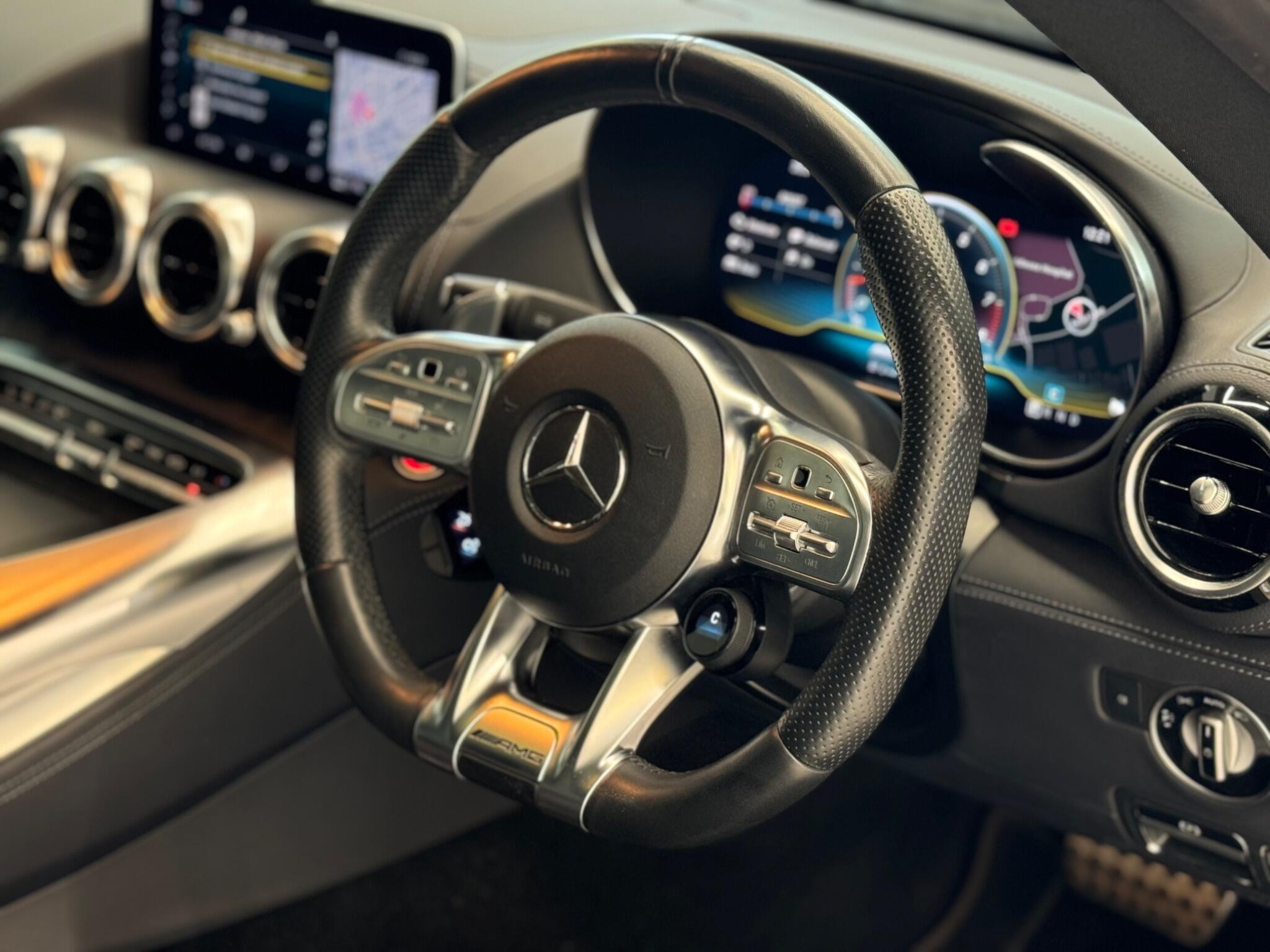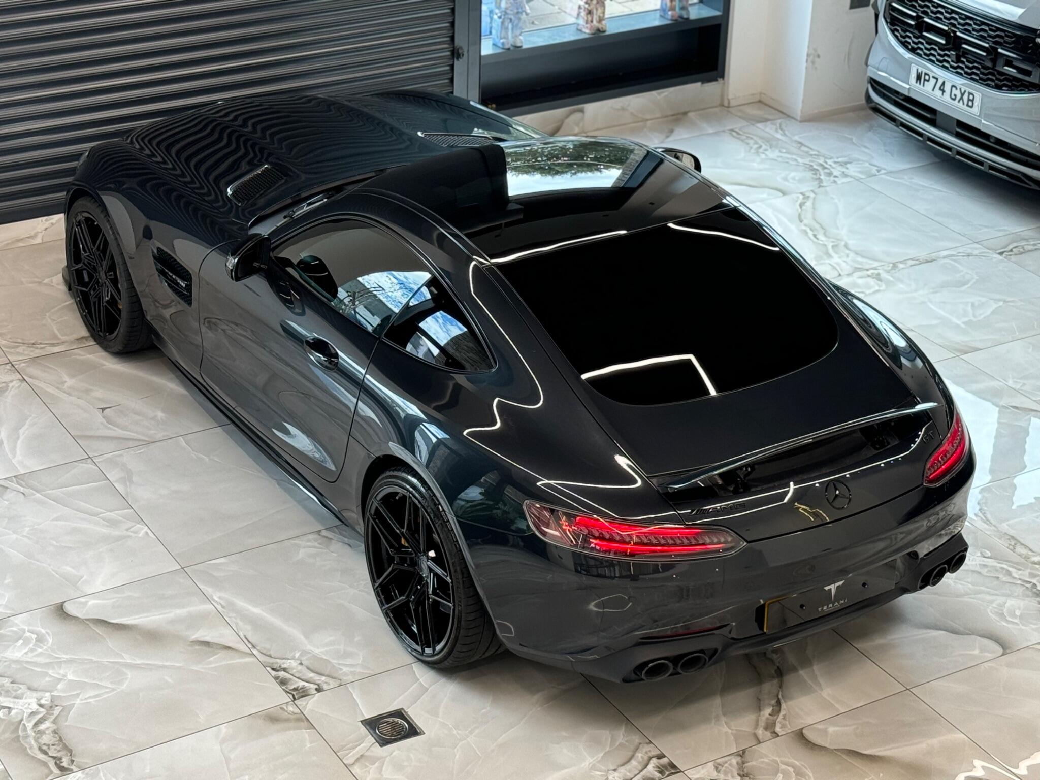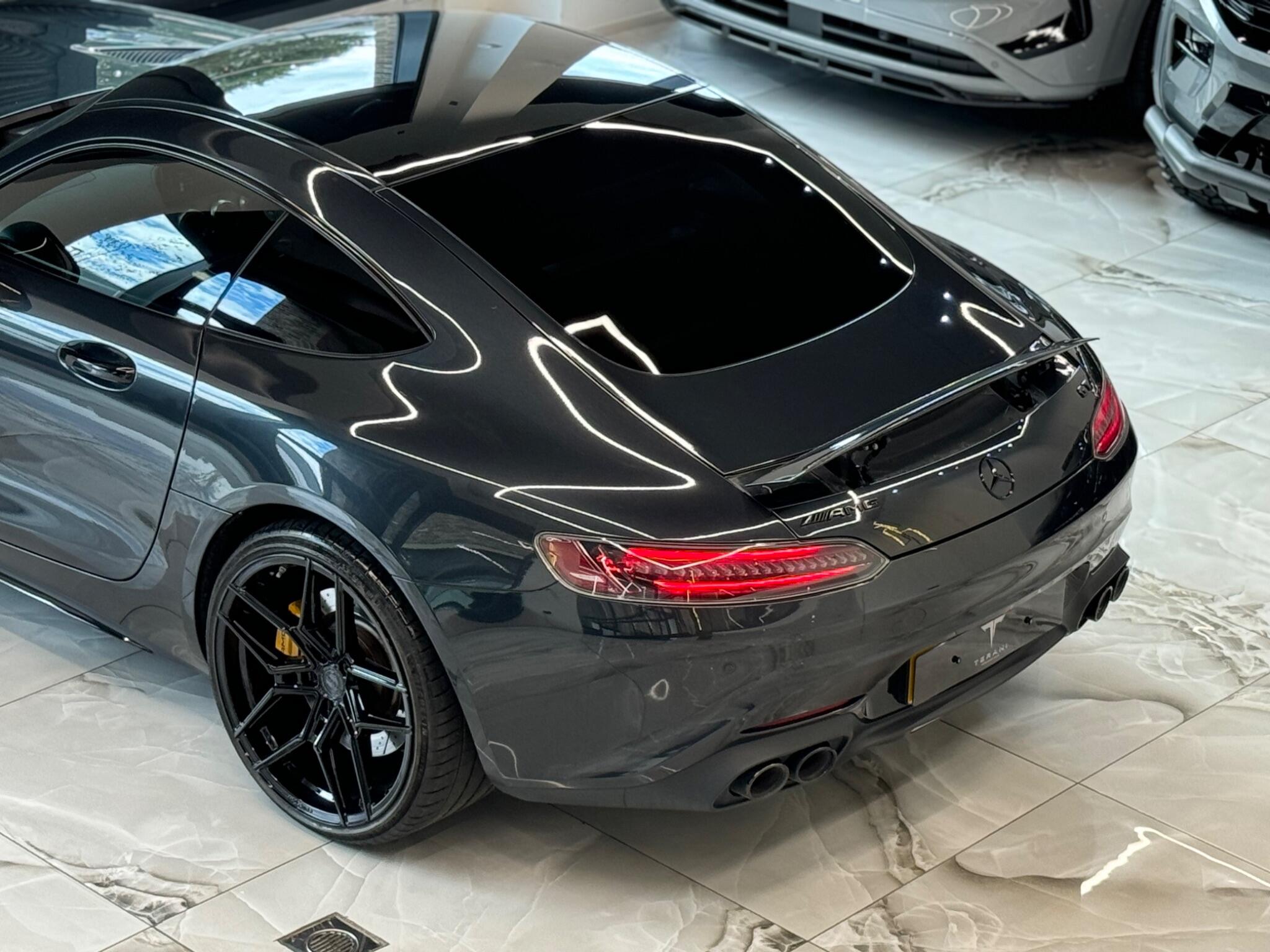 MASSIVE SPEC....18 MONTHS WARRANTY... UPGRADED CONCAVER WHEELS|BLACK EXTERIOR PACK|SPORT EXHAUST|FULL MB SERVICE HISTORY... ADDITIONAL TRACKER & IMMOBILISER FITTED This 2020 Mercedes-Benz AMG GT V8 BiTurbo offers exceptional provenance with a remarkably low mileage of just 18,250 miles. Powered by a potent 4.0L V8 BiTurbo petrol engine, this Euro 6 compliant model is finished in a sophisticated black and features exclusive Nappa leather upholstery. The Premium Equipment Line enhances the driving experience, incorporating a fixed panoramic sunroof and keyless entry for effortless access. For your convenience and safety, it is equipped with Parking Assist PARKTRONIC, providing front and rear sensors, and LED High Performance Headlamps with Adaptive Highbeam Assist. The AMG GT V8 BiTurbo truly excels with its performance, achieving a rapid 0-62mph acceleration in just 4.0 seconds, demonstrating its superior capability compared to many other vehicles. Further elevating the cabin ambiance is the impressive Burmester High-End Surround Sound System, ensuring an immersive audio experience. These carefully selected features combine to offer a refined and exhilarating driving proposition.