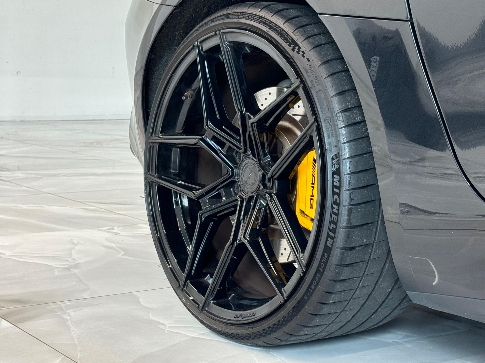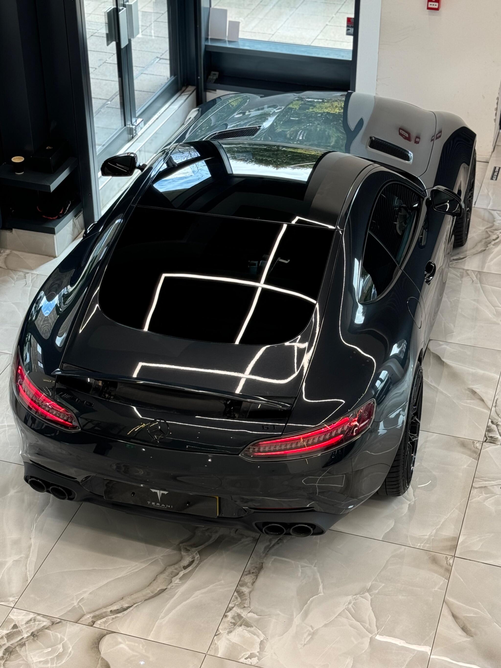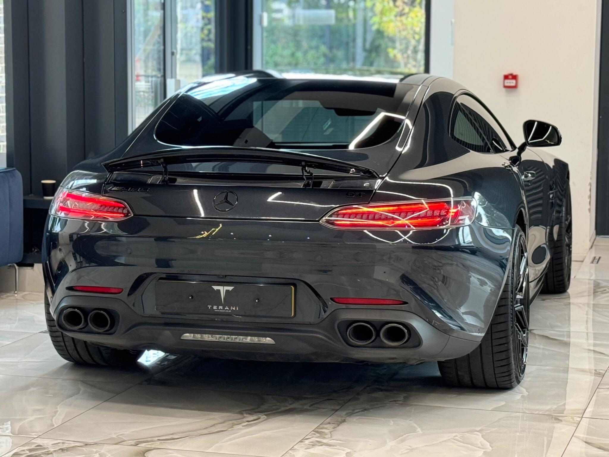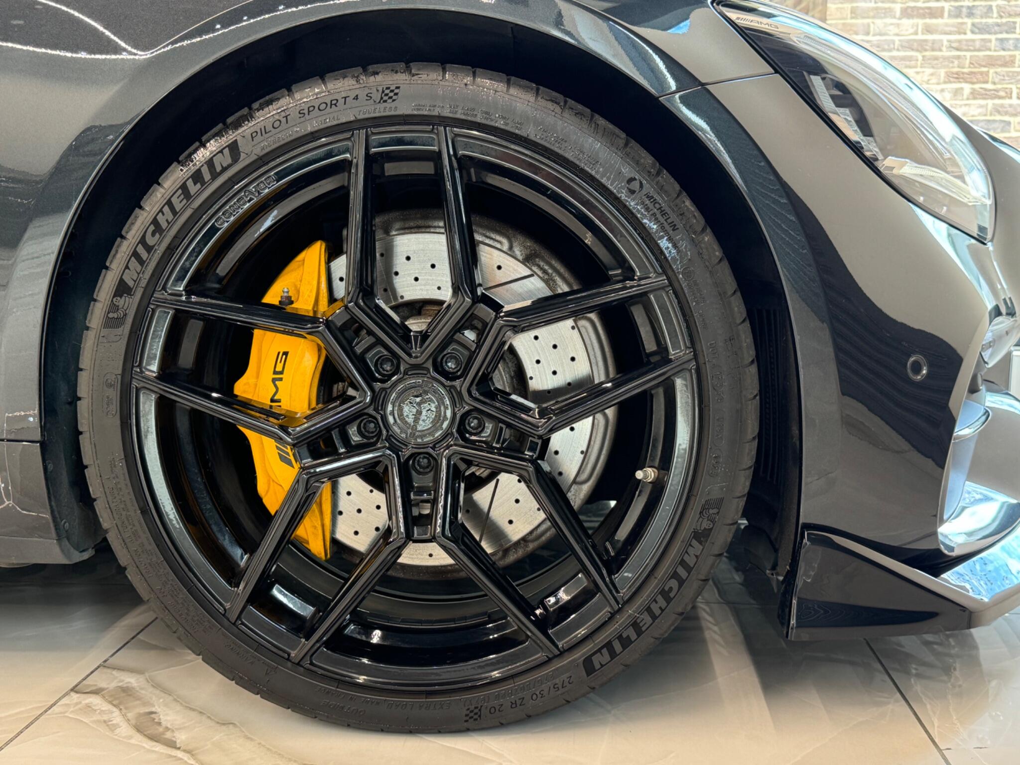 MASSIVE SPEC....18 MONTHS WARRANTY... UPGRADED CONCAVER WHEELS|BLACK EXTERIOR PACK|SPORT EXHAUST|FULL MB SERVICE HISTORY... ADDITIONAL TRACKER & IMMOBILISER FITTED This 2020 Mercedes-Benz AMG GT V8 BiTurbo offers exceptional provenance with a remarkably low mileage of just 18,250 miles. Powered by a potent 4.0L V8 BiTurbo petrol engine, this Euro 6 compliant model is finished in a sophisticated black and features exclusive Nappa leather upholstery. The Premium Equipment Line enhances the driving experience, incorporating a fixed panoramic sunroof and keyless entry for effortless access. For your convenience and safety, it is equipped with Parking Assist PARKTRONIC, providing front and rear sensors, and LED High Performance Headlamps with Adaptive Highbeam Assist. The AMG GT V8 BiTurbo truly excels with its performance, achieving a rapid 0-62mph acceleration in just 4.0 seconds, demonstrating its superior capability compared to many other vehicles. Further elevating the cabin ambiance is the impressive Burmester High-End Surround Sound System, ensuring an immersive audio experience. These carefully selected features combine to offer a refined and exhilarating driving proposition.