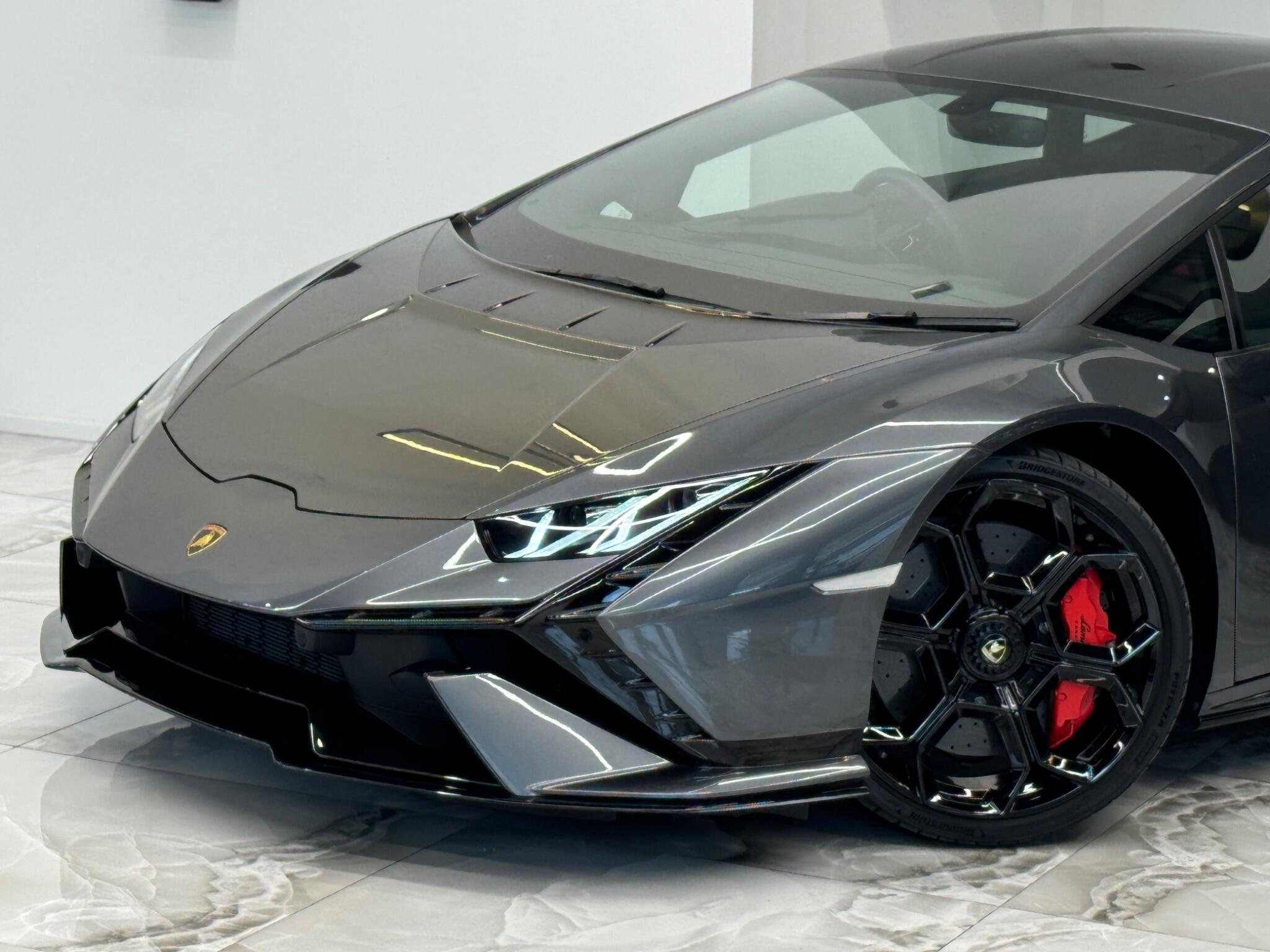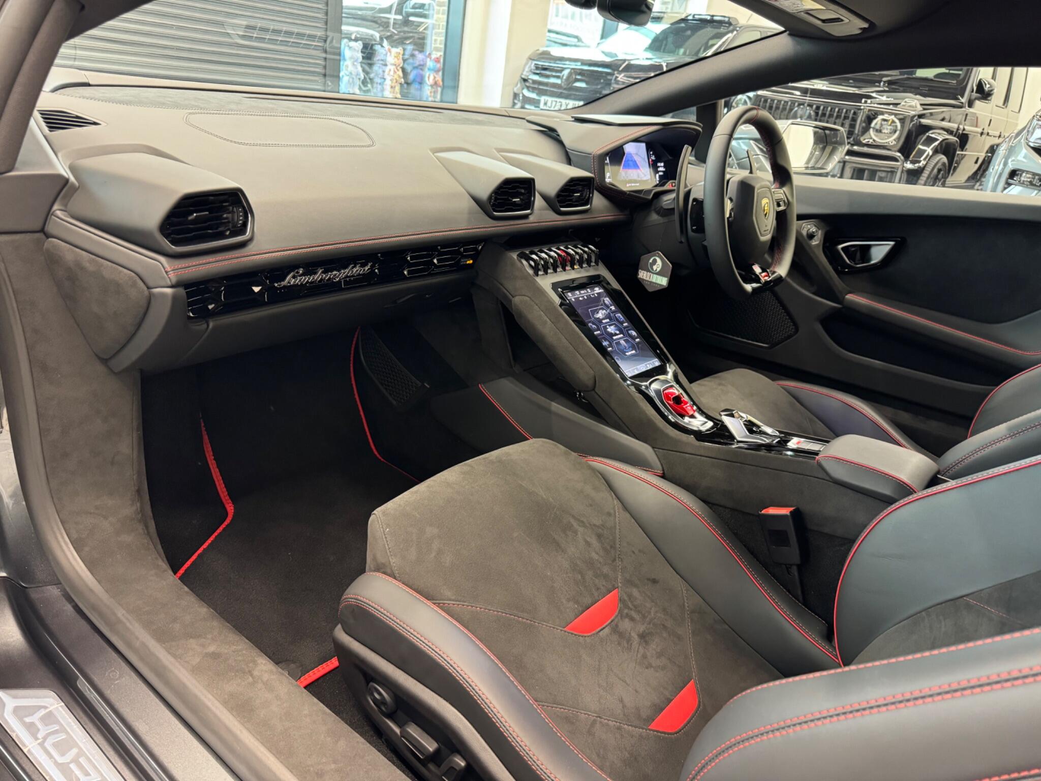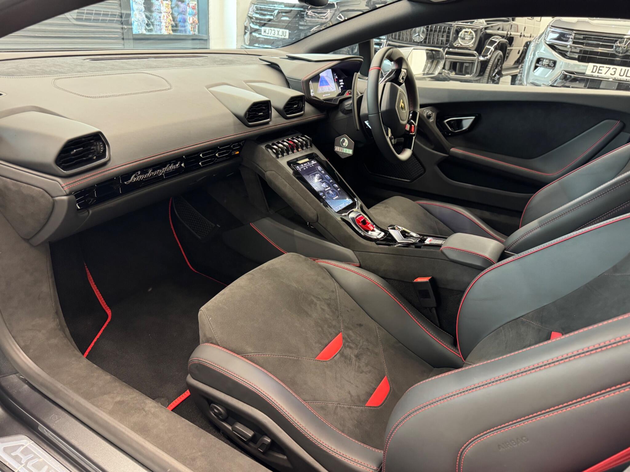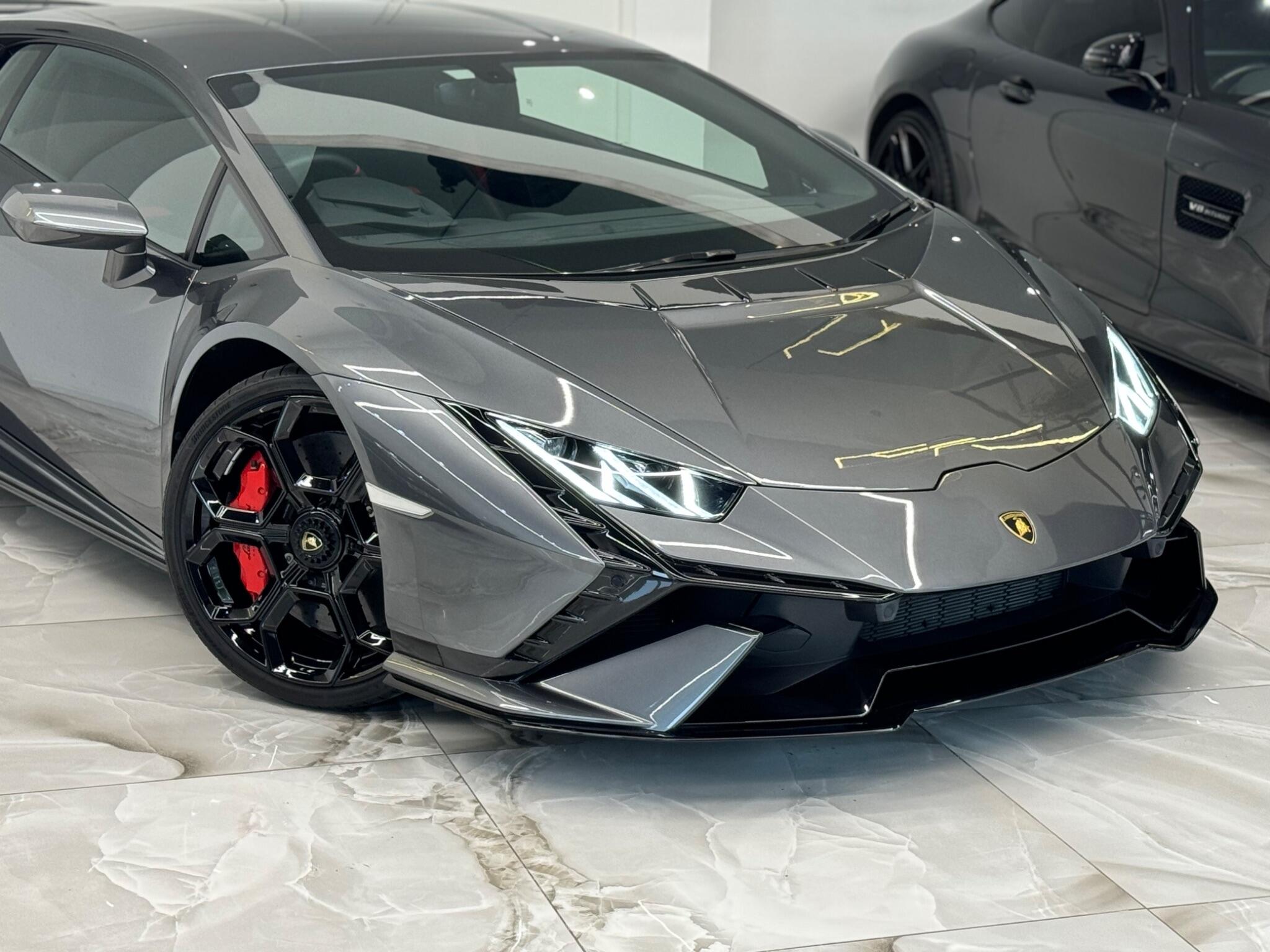 This 2024 Lamborghini Huracan V10 LP 640-2 Tecnica Lamborghini warranty and service plan may 2028, Carbon fibre Rear Engine Cover, Carbon fibre bonnet, suspension lift, Heated electric seats, Reverse camera + front and rear park assist, Functional Package, Rear Bumper and Diffuser high gloss black, Style package High gloss black, electric foldable side mirrors. boasts a clear vehicle history, offering peace of mind alongside its exceptional performance. Powered by a potent 5.2 litre petrol engine, this Euro 6 compliant supercar delivers exhilarating speed, reaching 0-62mph in a remarkable 3.2 seconds. Inside, you'll find a sophisticated cabin featuring automatic dual-zone air conditioning with an active carbon filter, ensuring a comfortable environment. Connectivity is seamless thanks to the Lamborghini Touch-Screen Infotainment System with an 8.4 inch portrait oriented screen and Bluetooth preparation. Manoeuvring is made easier with front and rear parking sensors, and the vehicle is illuminated by a full LED lighting concept, including powerful LED headlights. The Tecnica variant of the Huracan is engineered for an engaging driving experience, and its impressive acceleration figures highlight its superior performance compared to other vehicles in its class. This combination of cutting edge technology, powerful engineering, and a clear history makes this Lamborghini Huracan a truly desirable proposition for any discerning driver.