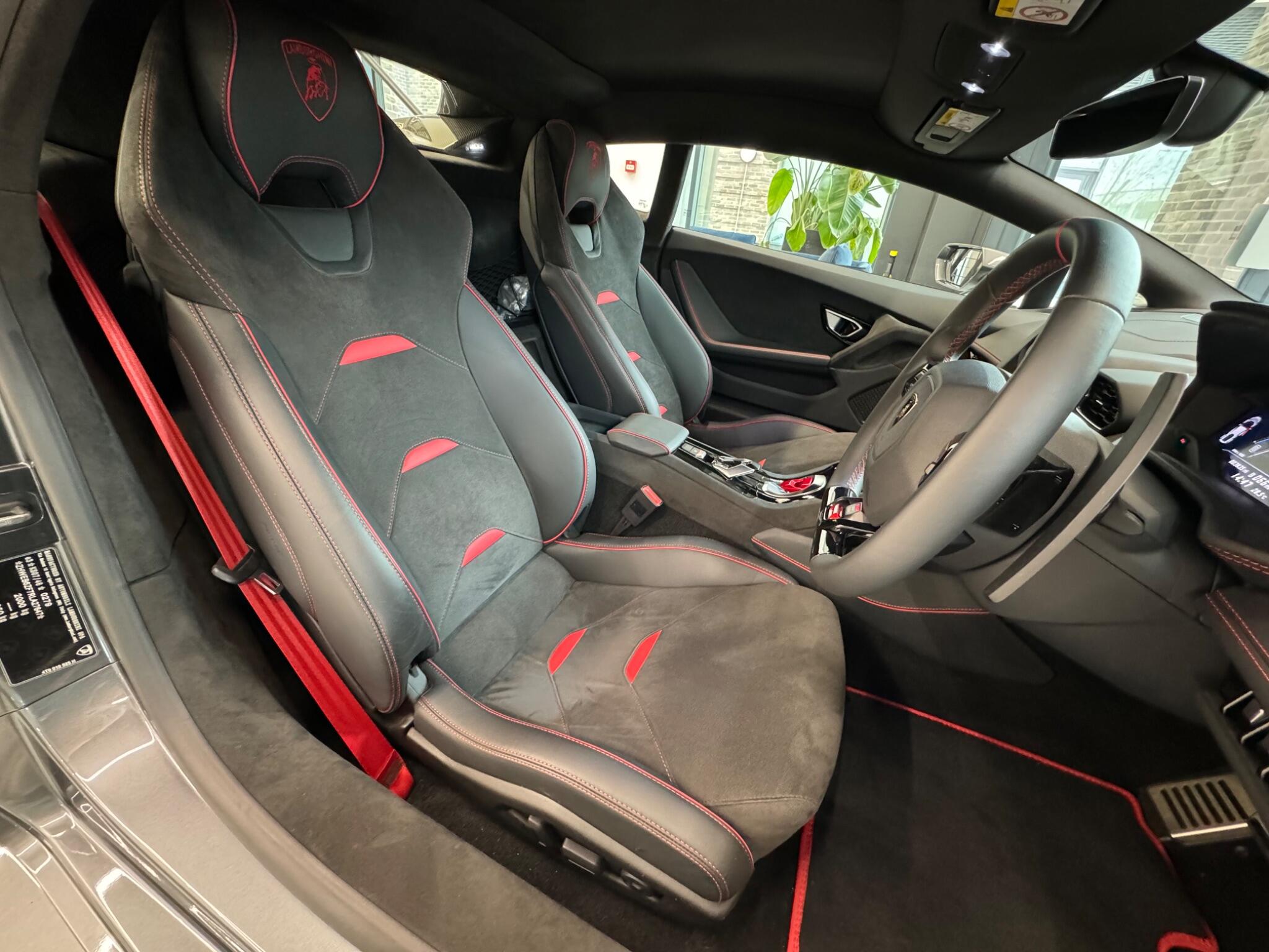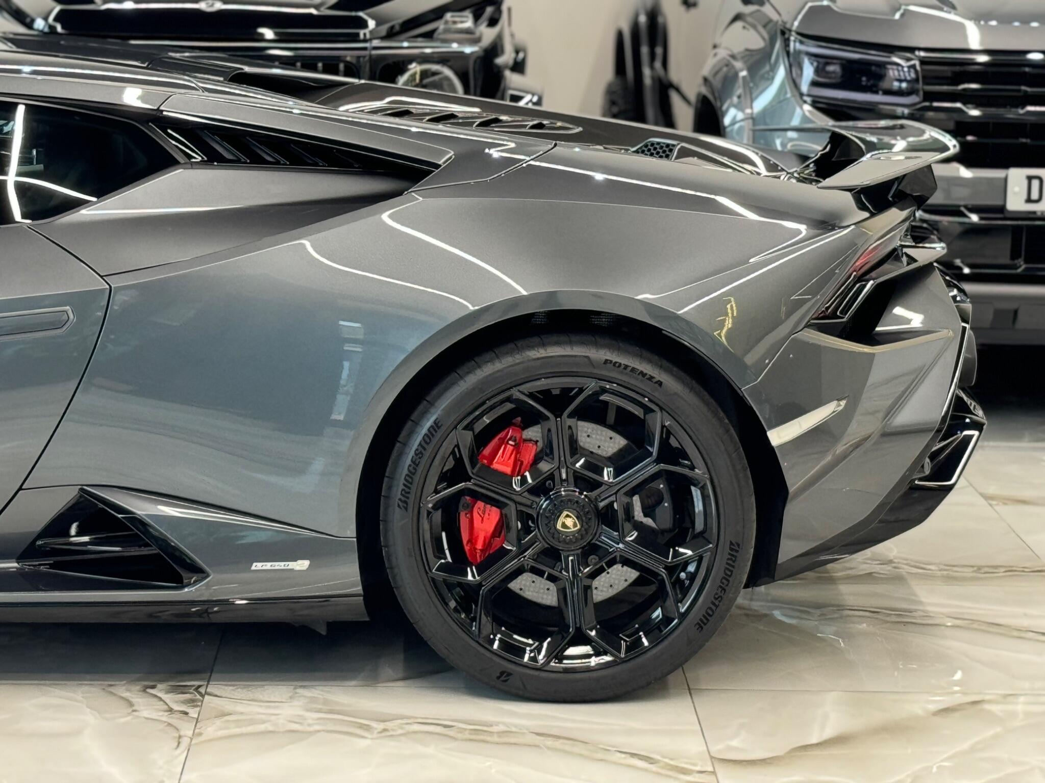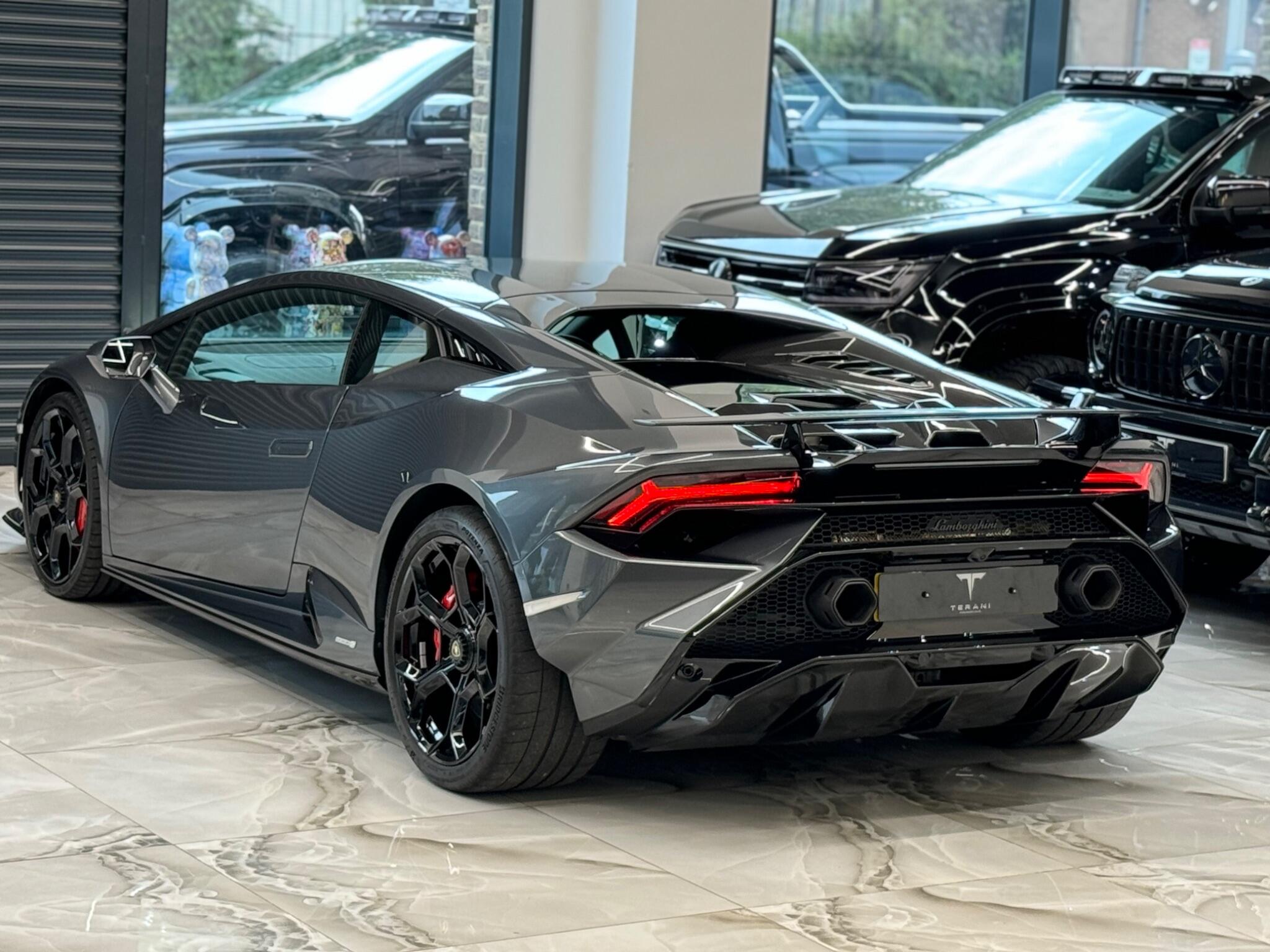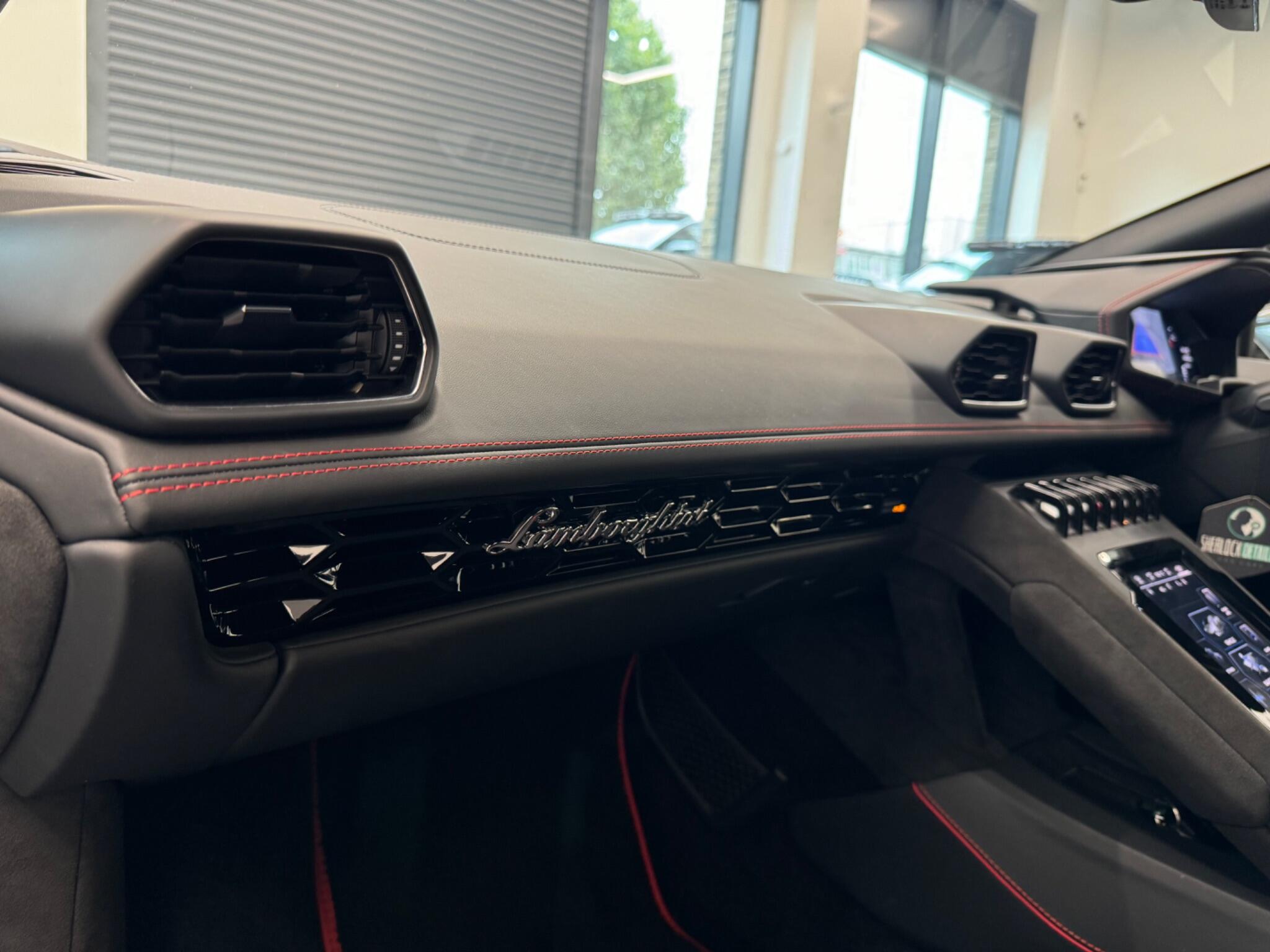 This 2024 Lamborghini Huracan V10 LP 640-2 Tecnica Lamborghini warranty and service plan may 2028, Carbon fibre Rear Engine Cover, Carbon fibre bonnet, suspension lift, Heated electric seats, Reverse camera + front and rear park assist, Functional Package, Rear Bumper and Diffuser high gloss black, Style package High gloss black, electric foldable side mirrors. boasts a clear vehicle history, offering peace of mind alongside its exceptional performance. Powered by a potent 5.2 litre petrol engine, this Euro 6 compliant supercar delivers exhilarating speed, reaching 0-62mph in a remarkable 3.2 seconds. Inside, you'll find a sophisticated cabin featuring automatic dual-zone air conditioning with an active carbon filter, ensuring a comfortable environment. Connectivity is seamless thanks to the Lamborghini Touch-Screen Infotainment System with an 8.4 inch portrait oriented screen and Bluetooth preparation. Manoeuvring is made easier with front and rear parking sensors, and the vehicle is illuminated by a full LED lighting concept, including powerful LED headlights. The Tecnica variant of the Huracan is engineered for an engaging driving experience, and its impressive acceleration figures highlight its superior performance compared to other vehicles in its class. This combination of cutting edge technology, powerful engineering, and a clear history makes this Lamborghini Huracan a truly desirable proposition for any discerning driver.