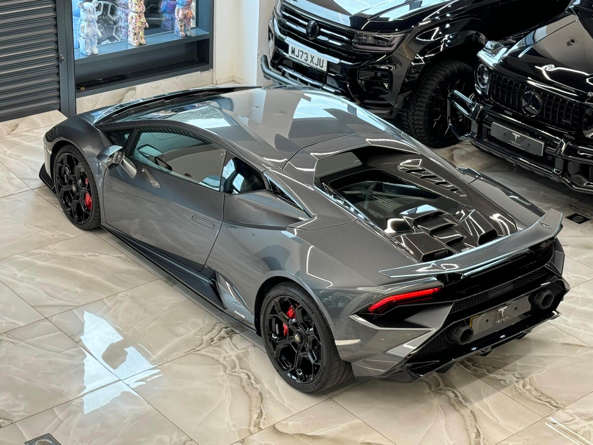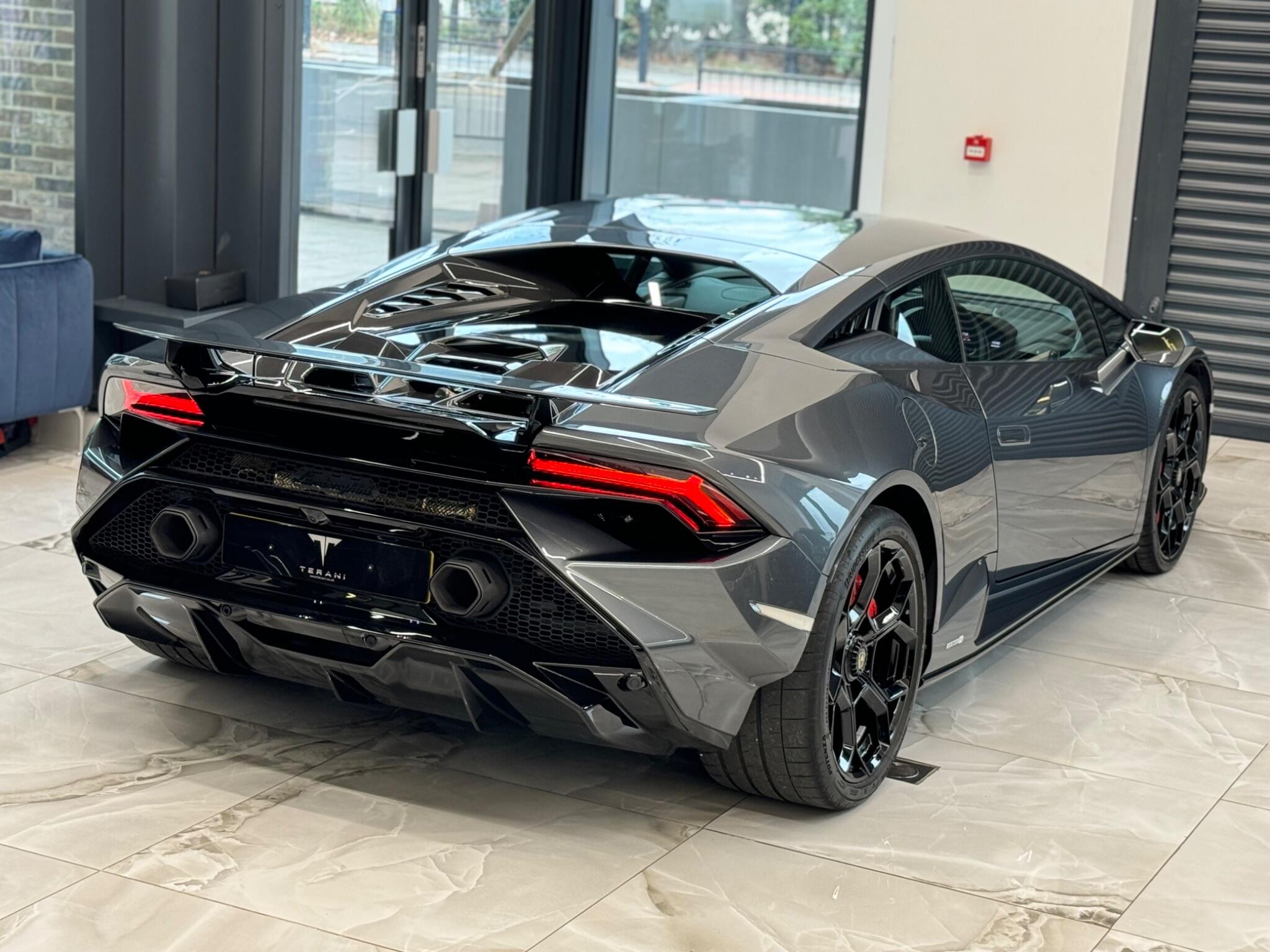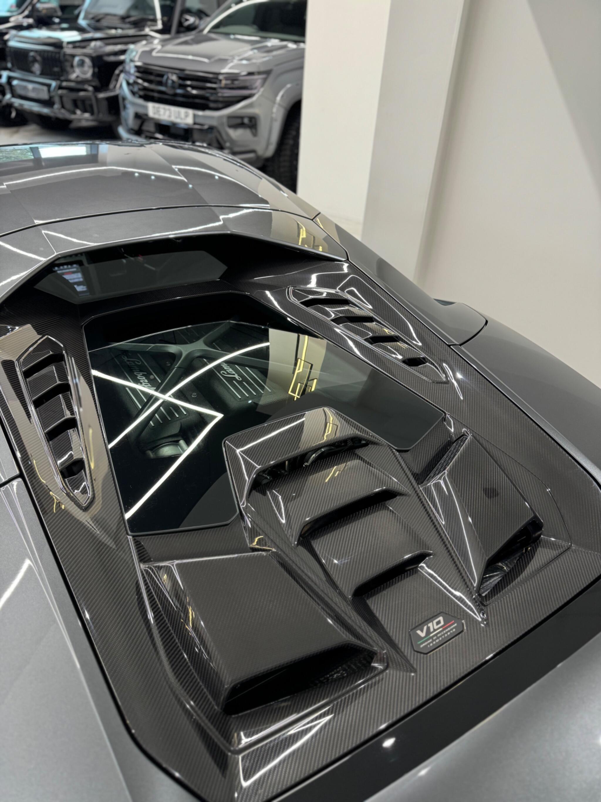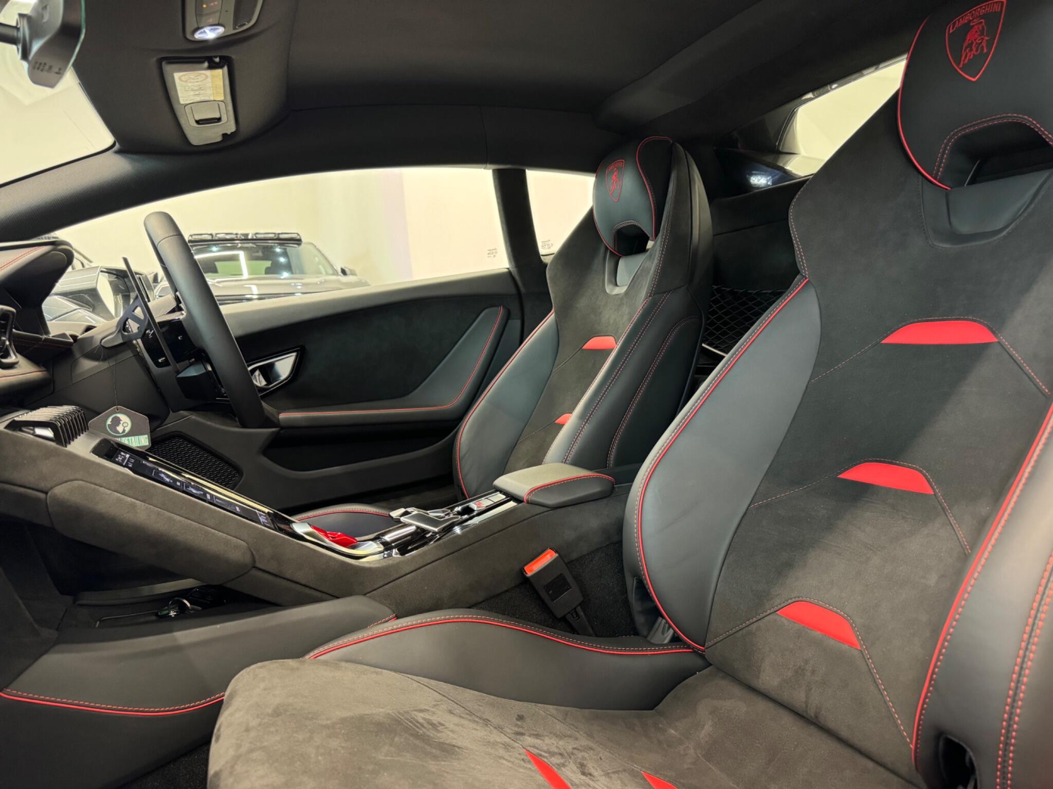 This 2024 Lamborghini Huracan V10 LP 640-2 Tecnica Lamborghini warranty and service plan may 2028, Carbon fibre Rear Engine Cover, Carbon fibre bonnet, suspension lift, Heated electric seats, Reverse camera + front and rear park assist, Functional Package, Rear Bumper and Diffuser high gloss black, Style package High gloss black, electric foldable side mirrors. boasts a clear vehicle history, offering peace of mind alongside its exceptional performance. Powered by a potent 5.2 litre petrol engine, this Euro 6 compliant supercar delivers exhilarating speed, reaching 0-62mph in a remarkable 3.2 seconds. Inside, you'll find a sophisticated cabin featuring automatic dual-zone air conditioning with an active carbon filter, ensuring a comfortable environment. Connectivity is seamless thanks to the Lamborghini Touch-Screen Infotainment System with an 8.4 inch portrait oriented screen and Bluetooth preparation. Manoeuvring is made easier with front and rear parking sensors, and the vehicle is illuminated by a full LED lighting concept, including powerful LED headlights. The Tecnica variant of the Huracan is engineered for an engaging driving experience, and its impressive acceleration figures highlight its superior performance compared to other vehicles in its class. This combination of cutting edge technology, powerful engineering, and a clear history makes this Lamborghini Huracan a truly desirable proposition for any discerning driver.