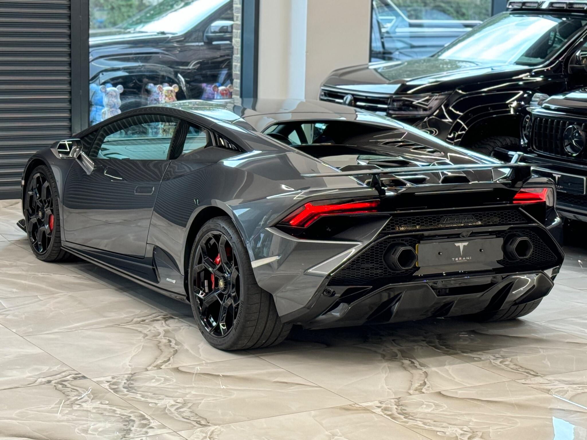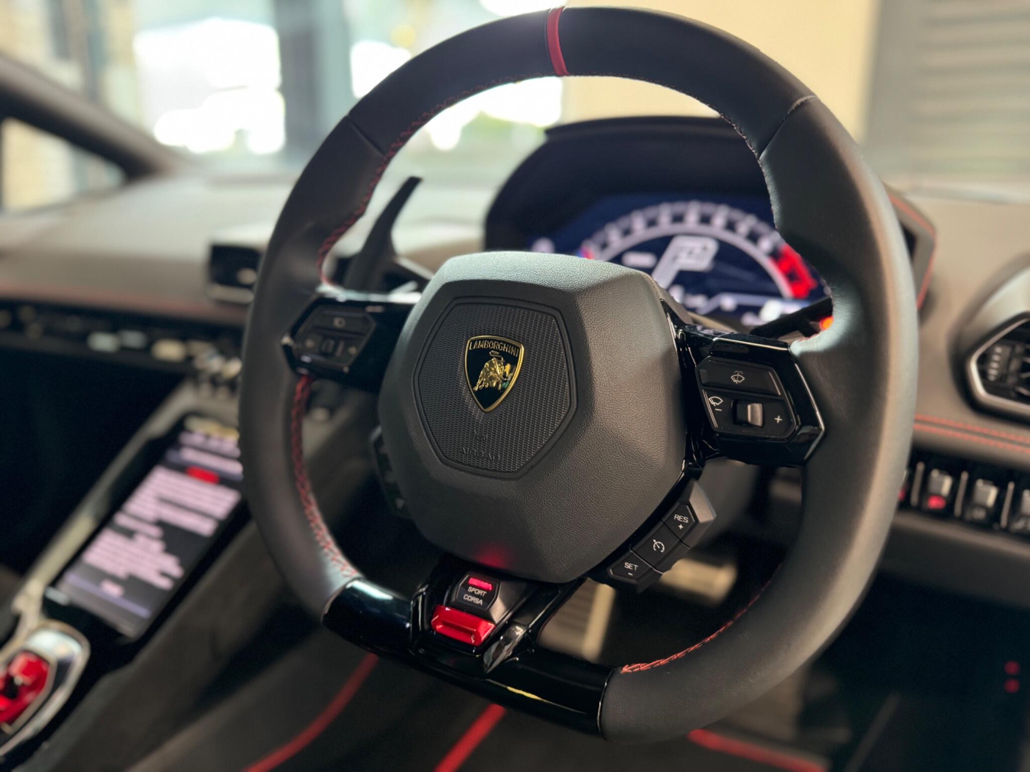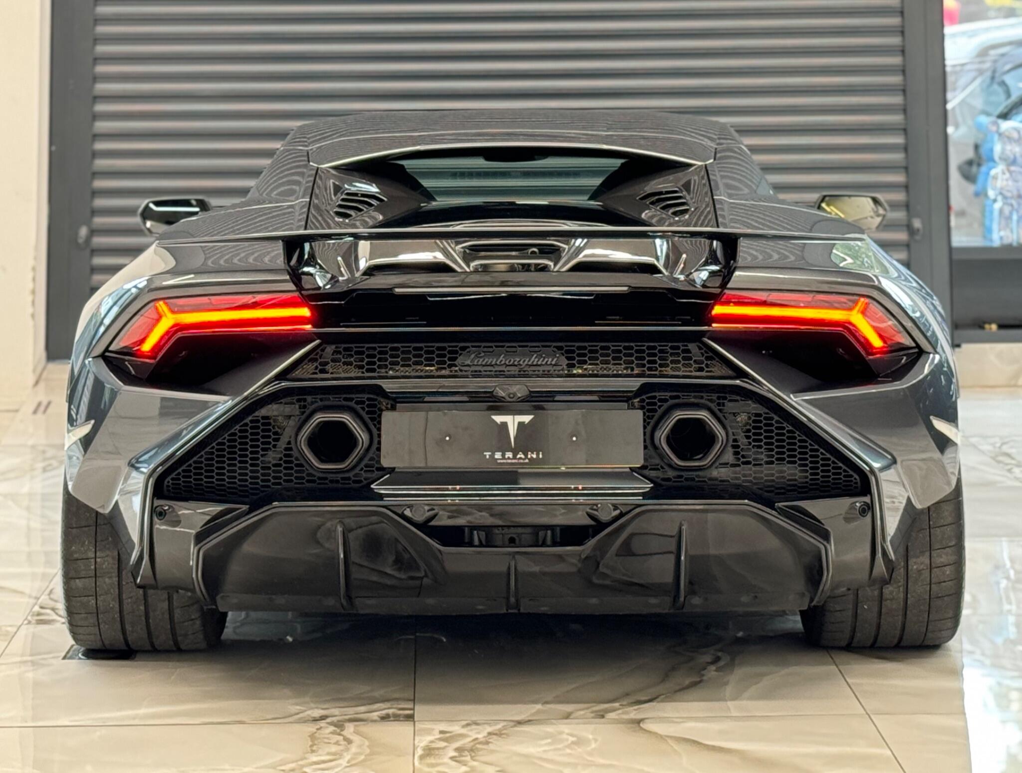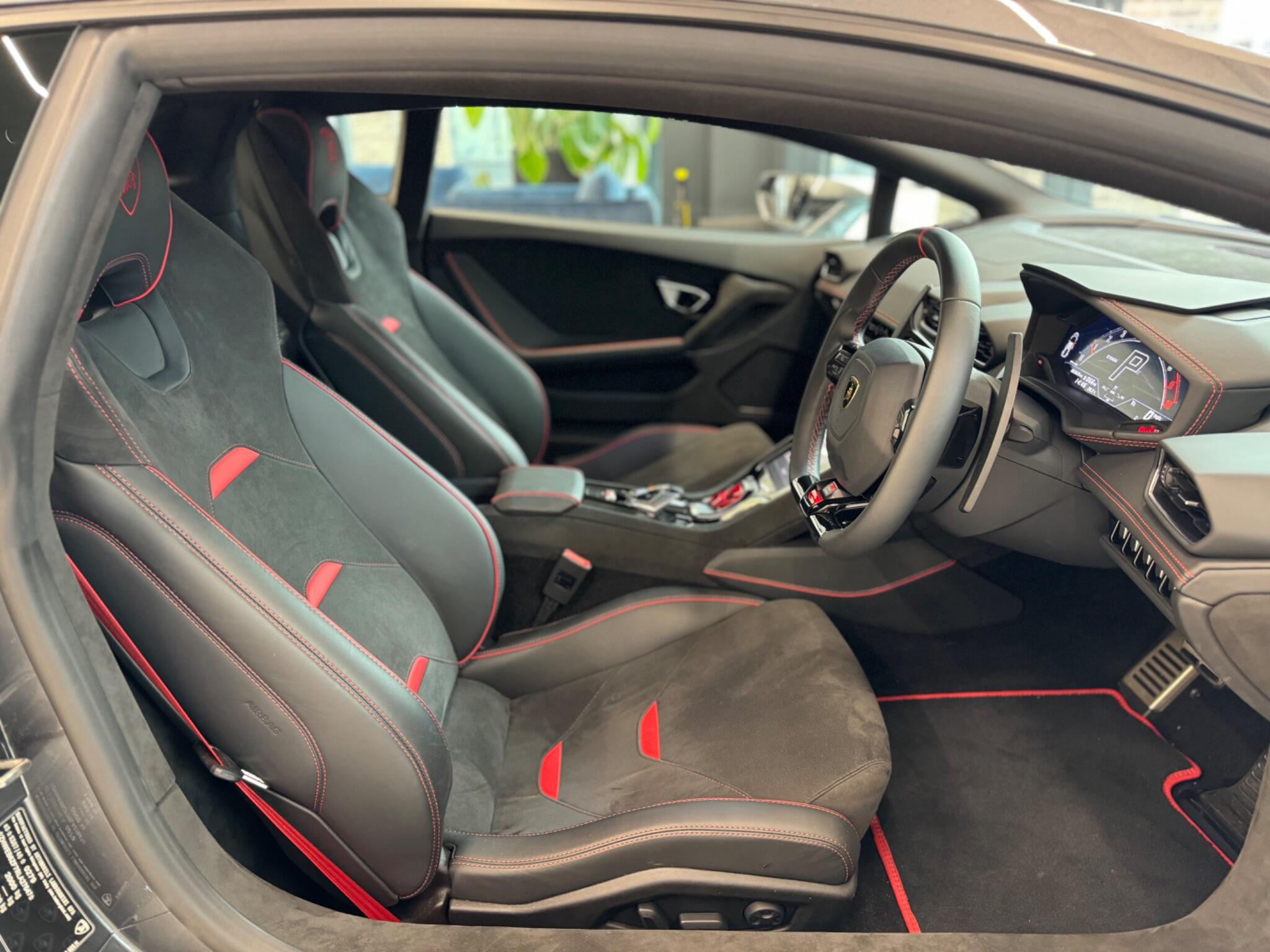 This 2024 Lamborghini Huracan V10 LP 640-2 Tecnica Lamborghini warranty and service plan may 2028, Carbon fibre Rear Engine Cover, Carbon fibre bonnet, suspension lift, Heated electric seats, Reverse camera + front and rear park assist, Functional Package, Rear Bumper and Diffuser high gloss black, Style package High gloss black, electric foldable side mirrors. boasts a clear vehicle history, offering peace of mind alongside its exceptional performance. Powered by a potent 5.2 litre petrol engine, this Euro 6 compliant supercar delivers exhilarating speed, reaching 0-62mph in a remarkable 3.2 seconds. Inside, you'll find a sophisticated cabin featuring automatic dual-zone air conditioning with an active carbon filter, ensuring a comfortable environment. Connectivity is seamless thanks to the Lamborghini Touch-Screen Infotainment System with an 8.4 inch portrait oriented screen and Bluetooth preparation. Manoeuvring is made easier with front and rear parking sensors, and the vehicle is illuminated by a full LED lighting concept, including powerful LED headlights. The Tecnica variant of the Huracan is engineered for an engaging driving experience, and its impressive acceleration figures highlight its superior performance compared to other vehicles in its class. This combination of cutting edge technology, powerful engineering, and a clear history makes this Lamborghini Huracan a truly desirable proposition for any discerning driver.