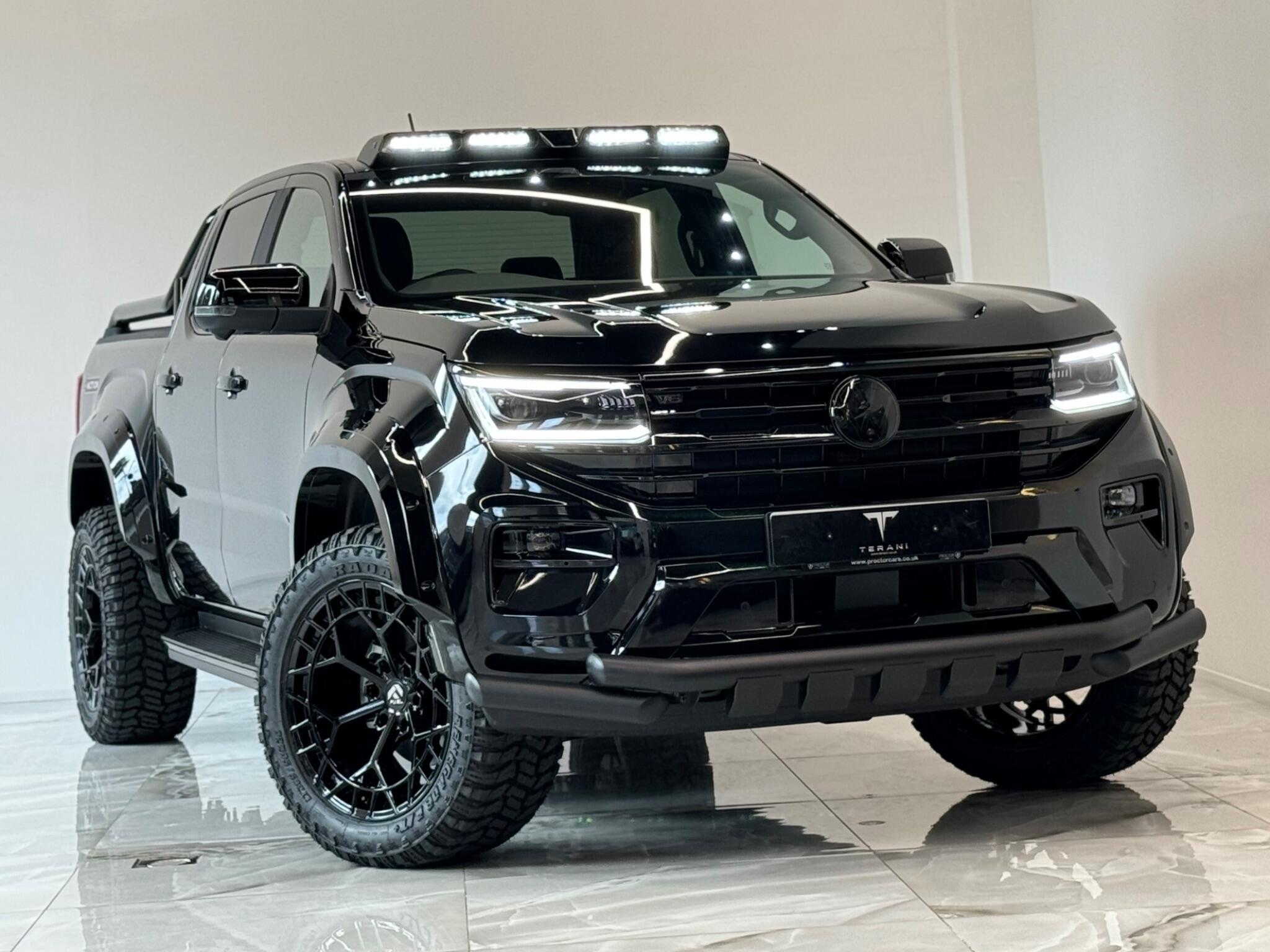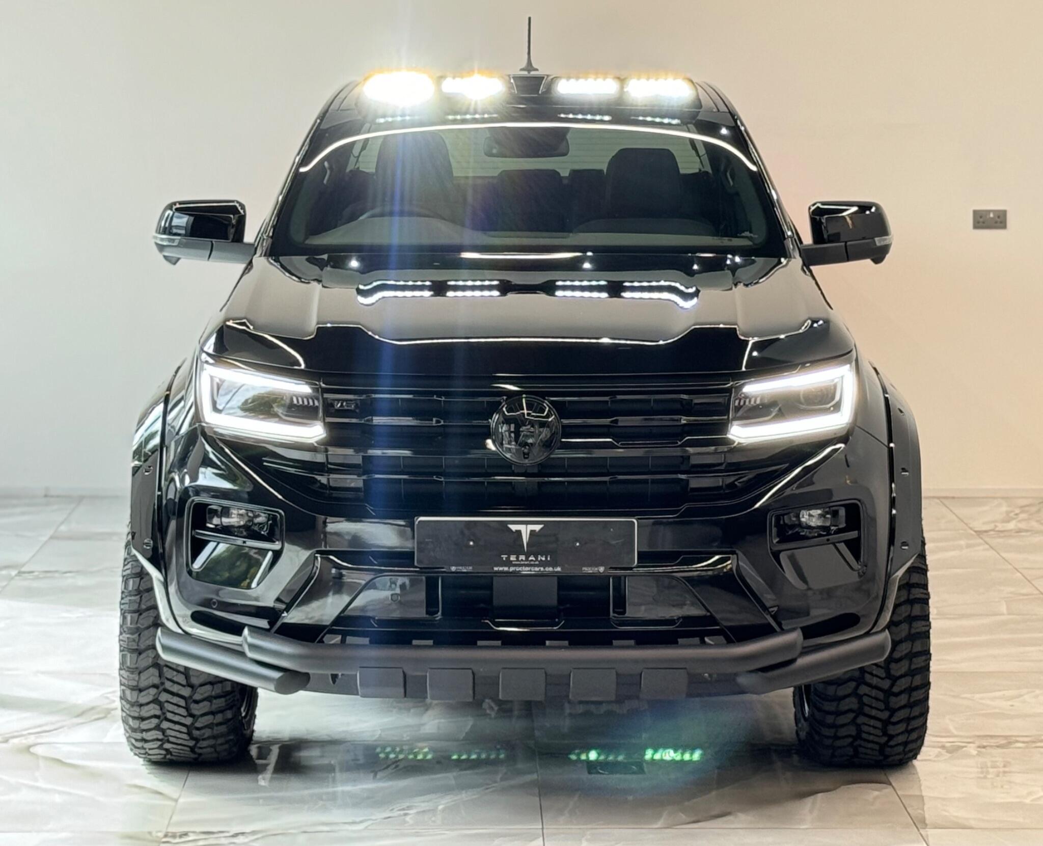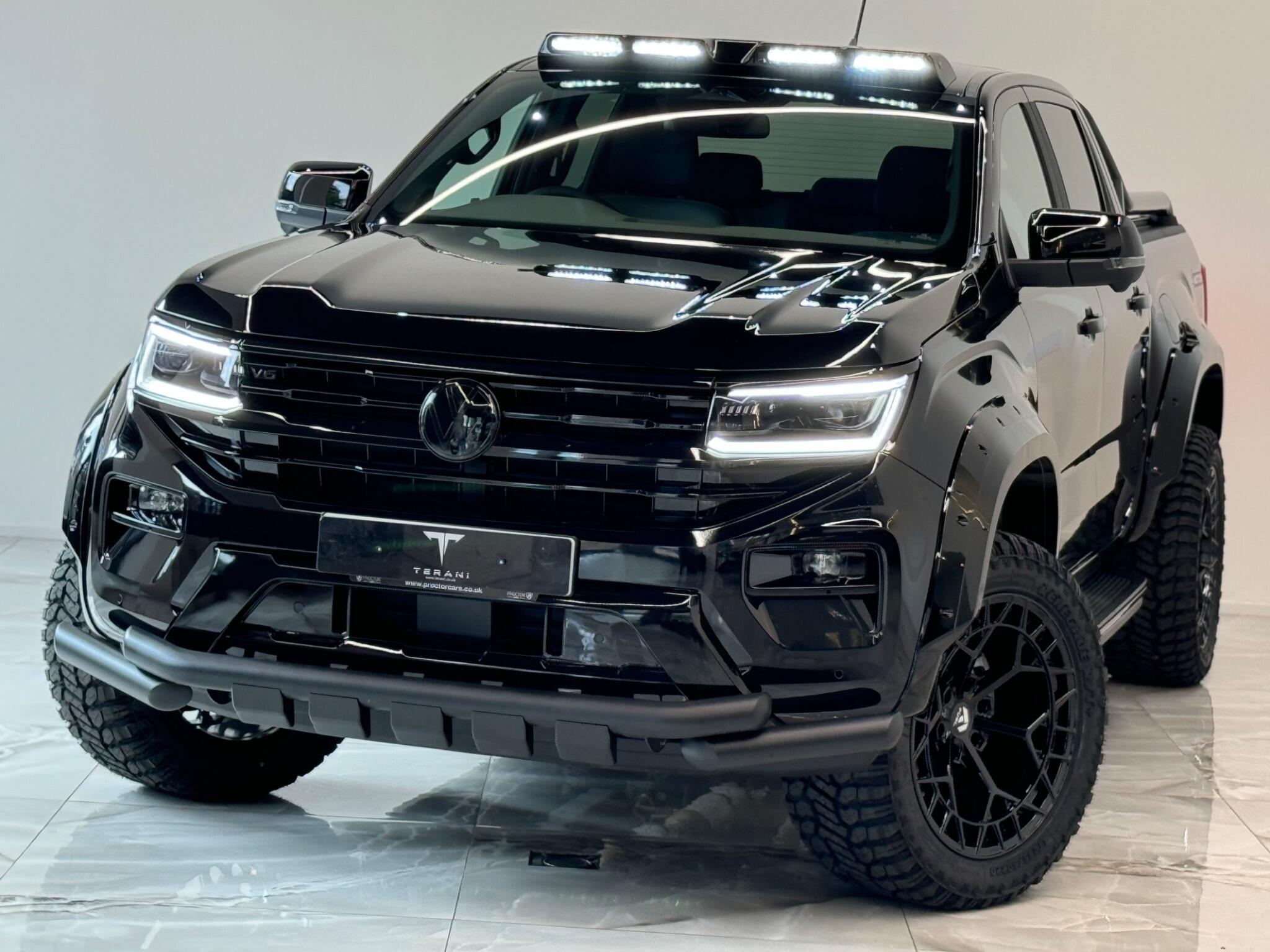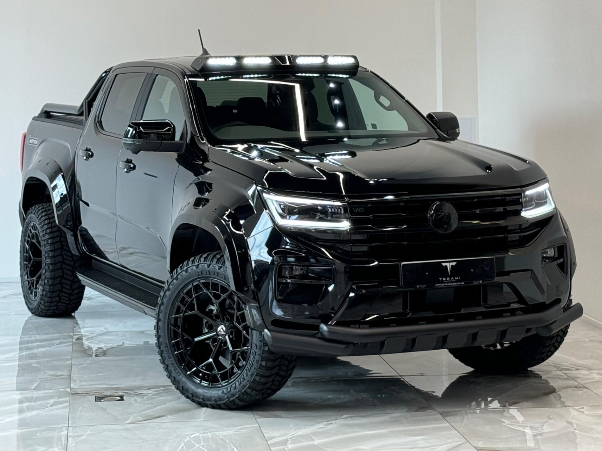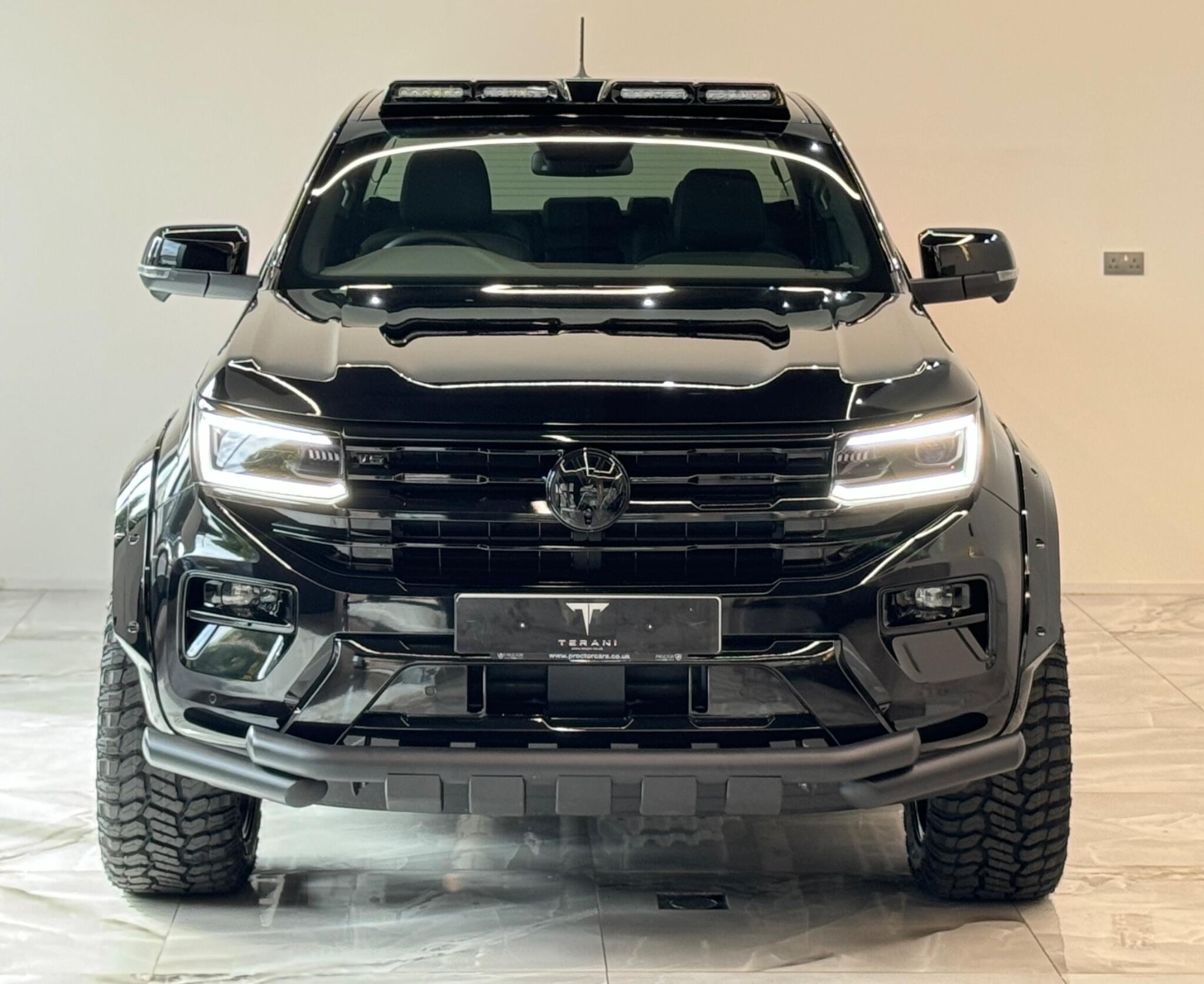 AVAILABLE IN STOCK|£53990 PLUS VAT| WE ARE PROUD TO PRESENT THIS NEW VW AMAROK V6 PREMIUM PACK "CENTURIA" CUSTOMISED BY TERANI"""""" 1 OUT OF 1 IN UK""""""VIEWING STRONGLY ADVISED""""'MASSIVE SPEC""""AVAILABLE '''''''|FINANCE|MANUFACTURE WARRANTY AND SERVICE PLAN|20" OFF-ROAD WHEELS|OFF-ROAD TYRES|WIDE ARCH BODY KIT|BLACK EXTERIOR PACK|LED REMOTE CONTROL ROOF LIGHT|GLOSS BLACK ROLL CAGE| FRONT BLACK BULL BAR|BLACK EXTERIOR PACK|ELECTRIC HEATED SEATS|APPLE CAR PLAY|ROLLER SHUTTER|FULL LEATHER INTERIOR|MERIDIAN SOUND SYSTEM|360 CAMERA|WIRELESS CHARGER|LED HEADLIGHTS....VIEWINGS BY APPOINTMENTS ONLY.... This 2025 Volkswagen Amarok is an exceptional find, boasting an incredibly low mileage of just 750 miles and having had only one owner. As a 3.0 TDI V6 Style Auto 4Motion Euro 6 (s/s) 4dr, this pickup truck combines robust capability with refined features. Under the bonnet, a powerful 3.0L Diesel engine delivers a notable 237 bhp, ensuring ample performance for any task. Its Four Wheel Drive system provides confidence in all conditions, while the Euro 6 emission standard signifies its modern efficiency. The Amarok is also equipped to tow up to 3500 kg, making it a versatile workhorse. The Style trim level enhances the driving experience with a host of advanced technologies. The IQ.LIGHT LED Matrix Headlamps, featuring Advanced High-Beam Control Dynamic Light Assist, offer superior visibility. For seamless connectivity, Apple CarPlay and Android Auto are integrated, allowing easy access to your smartphone. Long journeys are made more comfortable and safer with the Predictive Speed Limiter and Adaptive Cruise Control ACC, which also includes Dynamic Road Sign Display. Parking is made effortless thanks to the Area View 360 Camera and Park Assist, which includes front and rear parking sensors and rear traffic alert. These features collectively demonstrate how this Amarok offers a superior and more convenient ownership experience compared to other vehicles in its class.