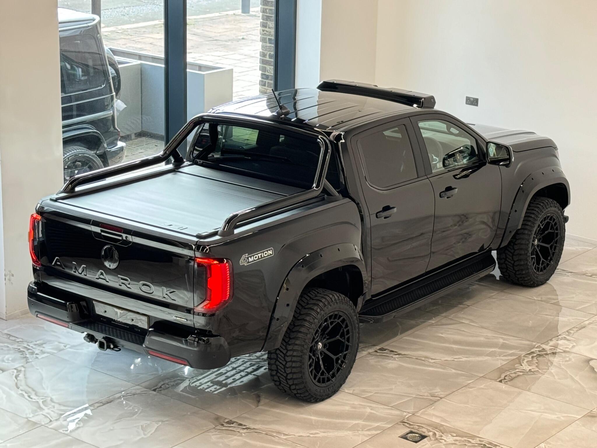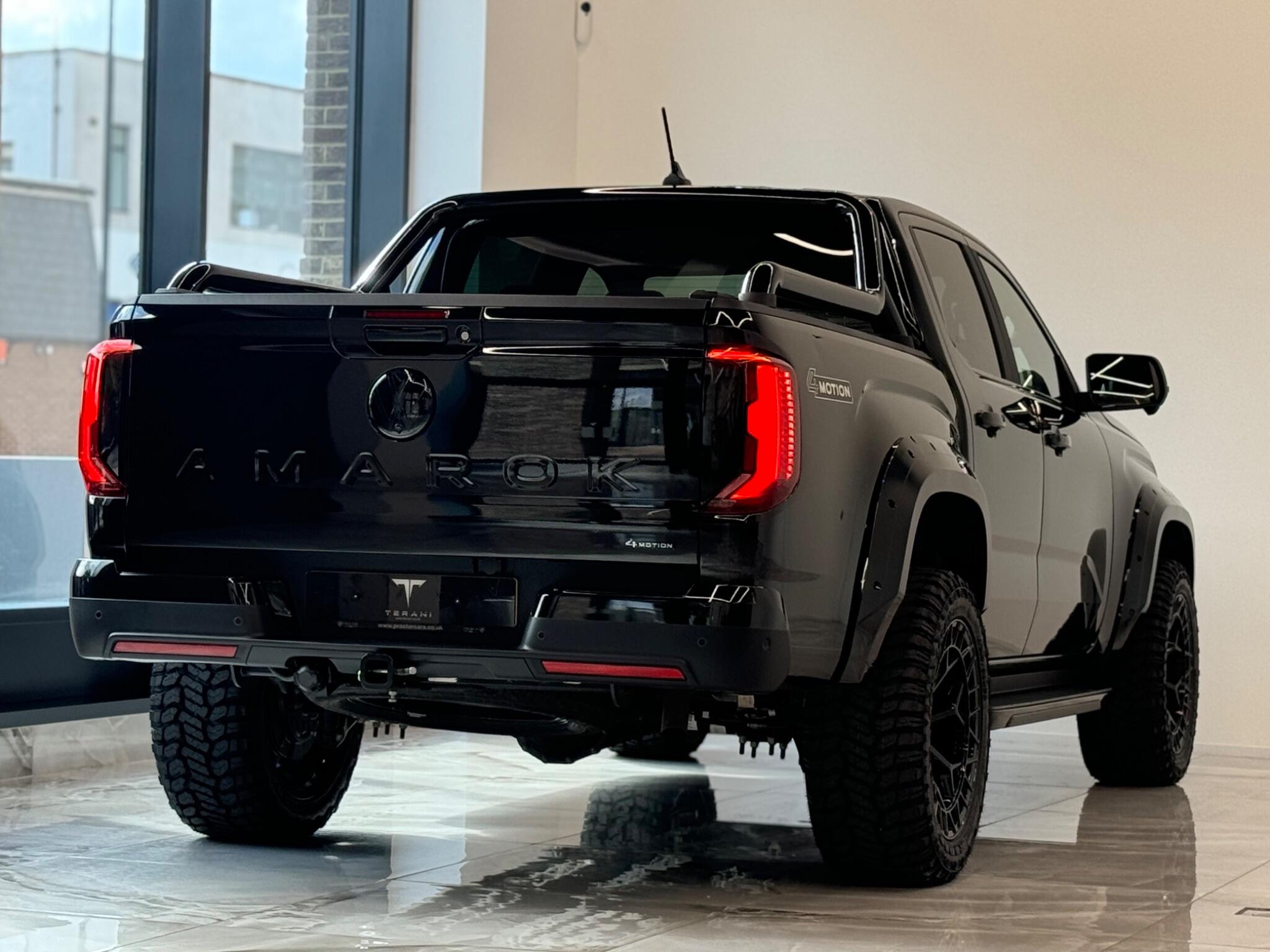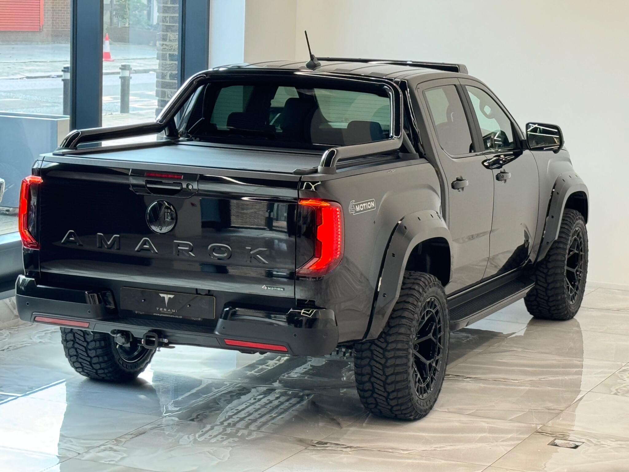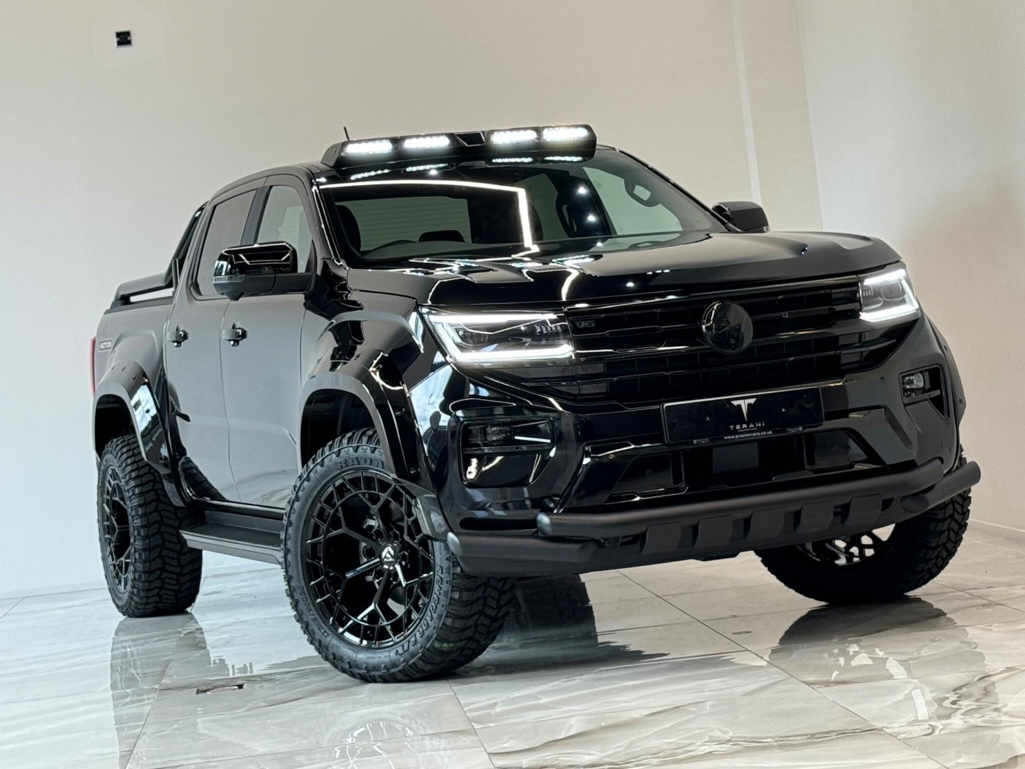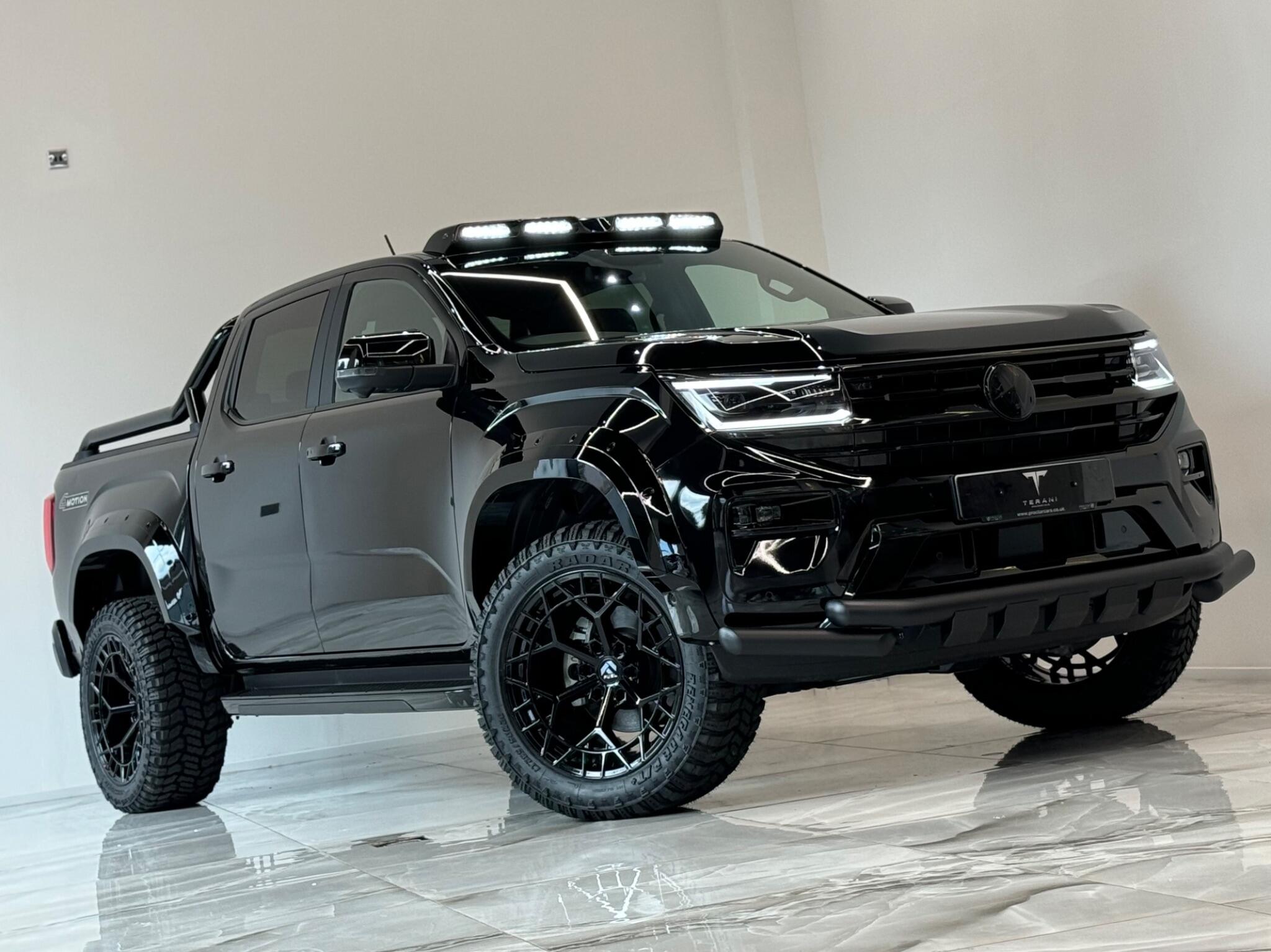 AVAILABLE IN STOCK|£53990 PLUS VAT| WE ARE PROUD TO PRESENT THIS NEW VW AMAROK V6 PREMIUM PACK "CENTURIA" CUSTOMISED BY TERANI"""""" 1 OUT OF 1 IN UK""""""VIEWING STRONGLY ADVISED""""'MASSIVE SPEC""""AVAILABLE '''''''|FINANCE|MANUFACTURE WARRANTY AND SERVICE PLAN|20" OFF-ROAD WHEELS|OFF-ROAD TYRES|WIDE ARCH BODY KIT|BLACK EXTERIOR PACK|LED REMOTE CONTROL ROOF LIGHT|GLOSS BLACK ROLL CAGE| FRONT BLACK BULL BAR|BLACK EXTERIOR PACK|ELECTRIC HEATED SEATS|APPLE CAR PLAY|ROLLER SHUTTER|FULL LEATHER INTERIOR|MERIDIAN SOUND SYSTEM|360 CAMERA|WIRELESS CHARGER|LED HEADLIGHTS....VIEWINGS BY APPOINTMENTS ONLY.... This 2025 Volkswagen Amarok is an exceptional find, boasting an incredibly low mileage of just 750 miles and having had only one owner. As a 3.0 TDI V6 Style Auto 4Motion Euro 6 (s/s) 4dr, this pickup truck combines robust capability with refined features. Under the bonnet, a powerful 3.0L Diesel engine delivers a notable 237 bhp, ensuring ample performance for any task. Its Four Wheel Drive system provides confidence in all conditions, while the Euro 6 emission standard signifies its modern efficiency. The Amarok is also equipped to tow up to 3500 kg, making it a versatile workhorse. The Style trim level enhances the driving experience with a host of advanced technologies. The IQ.LIGHT LED Matrix Headlamps, featuring Advanced High-Beam Control Dynamic Light Assist, offer superior visibility. For seamless connectivity, Apple CarPlay and Android Auto are integrated, allowing easy access to your smartphone. Long journeys are made more comfortable and safer with the Predictive Speed Limiter and Adaptive Cruise Control ACC, which also includes Dynamic Road Sign Display. Parking is made effortless thanks to the Area View 360 Camera and Park Assist, which includes front and rear parking sensors and rear traffic alert. These features collectively demonstrate how this Amarok offers a superior and more convenient ownership experience compared to other vehicles in its class.