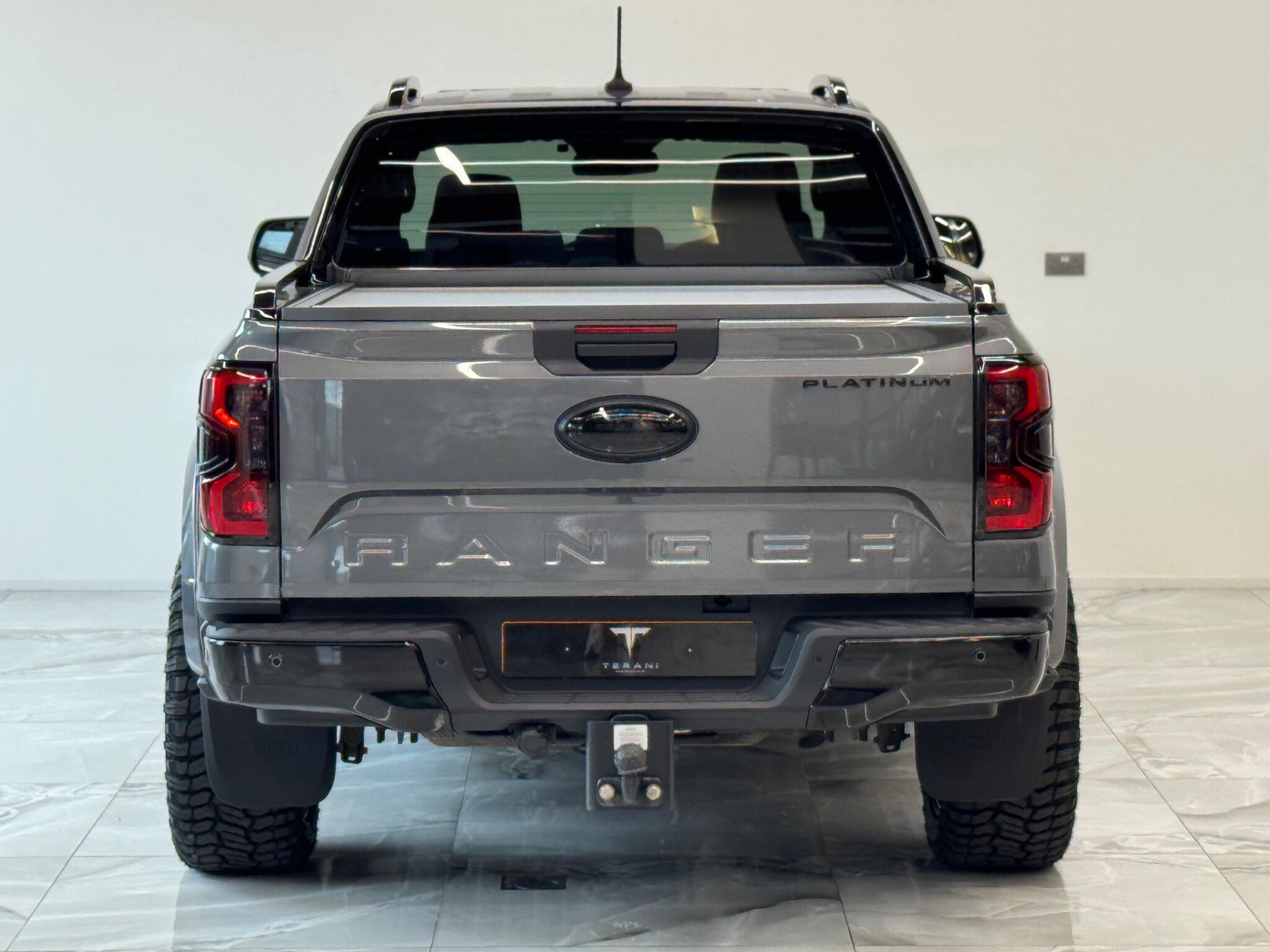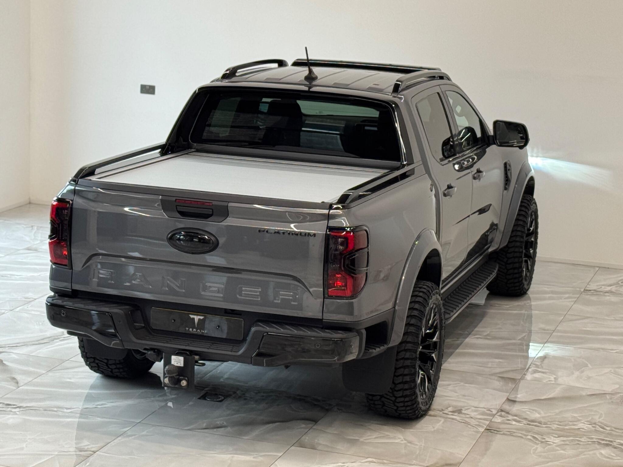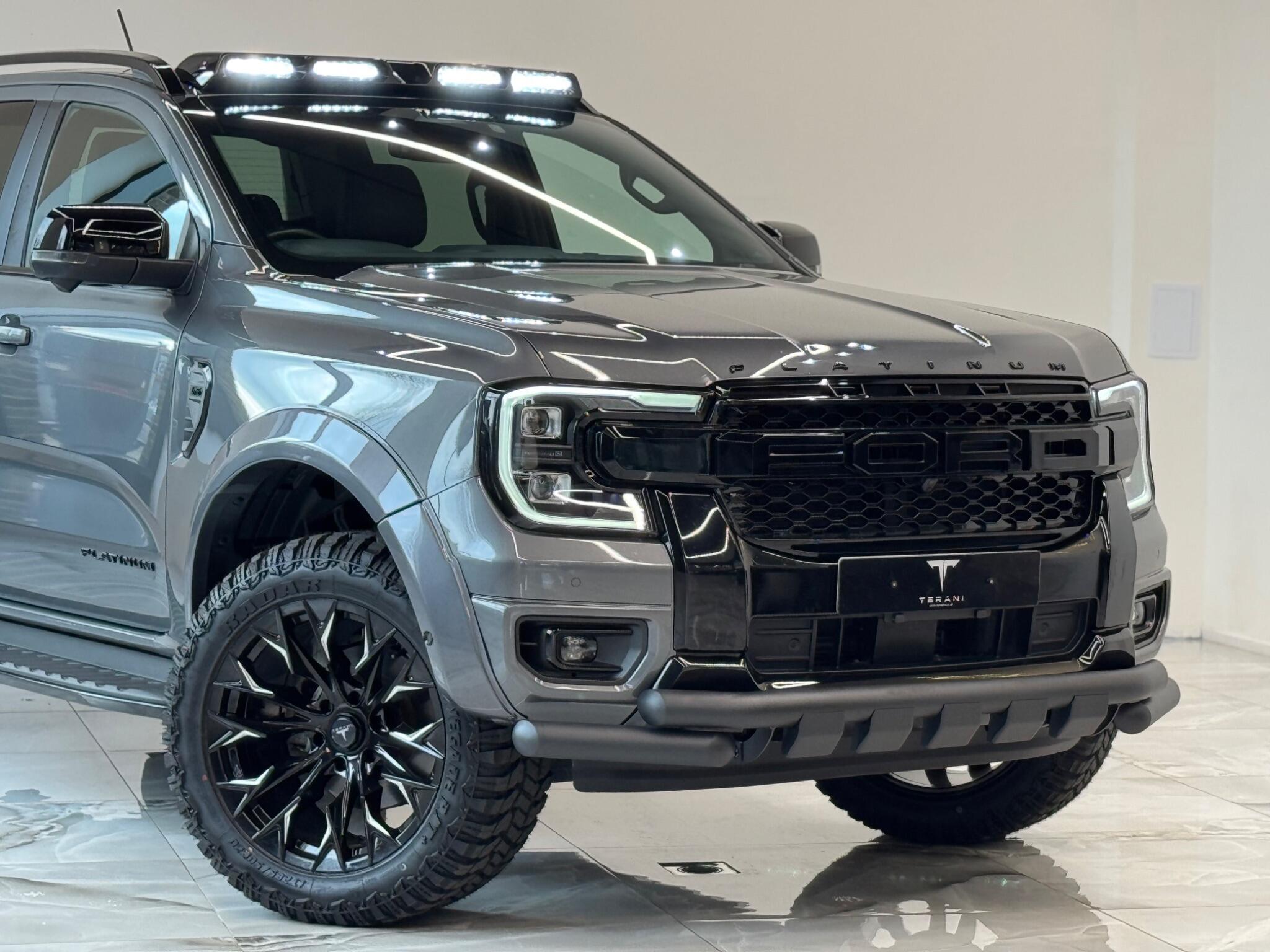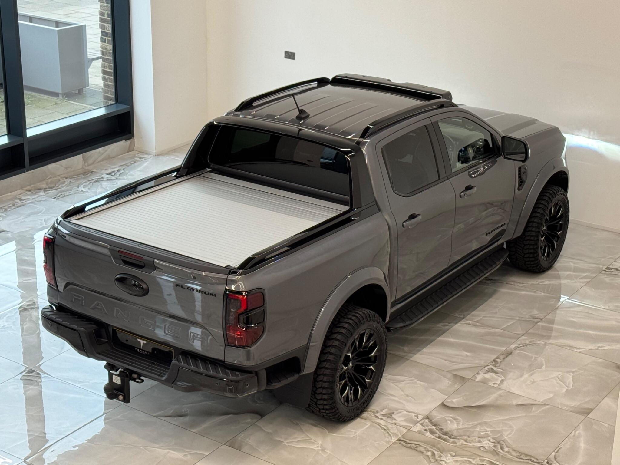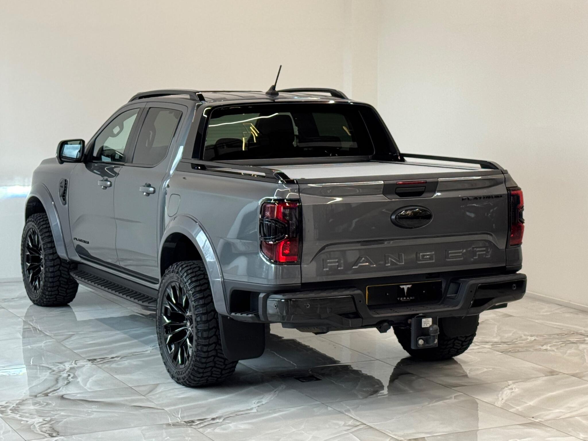 AVAILABLE IN STOCK UNDER CUSTOMISATION READY FOR 16TH MARCH|FORD RANGER 3.0 PLATINUM "CENTURIA" STONE GREY CUSTOMISED BY TERANI"""""" 1 OUT OF 1 IN UK""""""VIEWING STRONGLY ADVISED""""'MASSIVE SPEC""""AVAILABLE IN STOCK|£46990+VAT FINANCE 7.9% APR |COOLING/HEATED ELECTRIC SEATS|LED HEADLIGHTS|B&O SOUND SYSTEM|360 CAMERA AND PARK ASSIST|ELECTRIC ROLLER SHUTTER | ADAPTIVE CRUISE CONTROL|LANE ASSIST|ELECTRIC HEATED SEATS|APPLE CAR PLAY|HEATED STEERING WHEEL|REVERSE CAMERA |AUTO EMERGENCY BRAKE|AUTO HOLD|BLACK EXTERIOR PACK|WIDE ARCH KIT|OFF ROAD WHEELS|OFF ROAD MUD TYRES|LED ROOF LIGHT|UPGRADED LED INDICATING FOG LIGHTS|FRONT AND REAR LIGHTS PPF & GAURDS|CARBON UPGARDED INTERIOR TRIMS|FRONT BULL BAR..... VIEWINGS BY APPOINTMENT BASIS ONLY With exceptionally low mileage for its age, this 2023 Ford Ranger Platinum offers a superb ownership proposition. This four wheel drive, 3.0 litre diesel automatic pickup truck boasts a powerful 237 bhp engine and meets Euro 6 emission standards. It is equipped with the Technology Package 73, which includes Blind Spot Assistance, Adaptive Cruise Control, automatic headlights, and a 360 degree camera system for effortless parking. Further enhancing its practicality, it features front and rear parking sensors, a towbar, and a trailer tow class 1 rating, allowing for a substantial towing weight of 3500 kg. The Platinum trim level ensures a comfortable and convenient driving experience, highlighted by a heated steering wheel and passive keyless entry and start. The Power Pack 3 adds wireless phone charging, keeping your devices powered on the go. These features collectively demonstrate how this Ford Ranger Platinum surpasses other similar vehicles, offering advanced technology and premium comfort for both work and leisure.