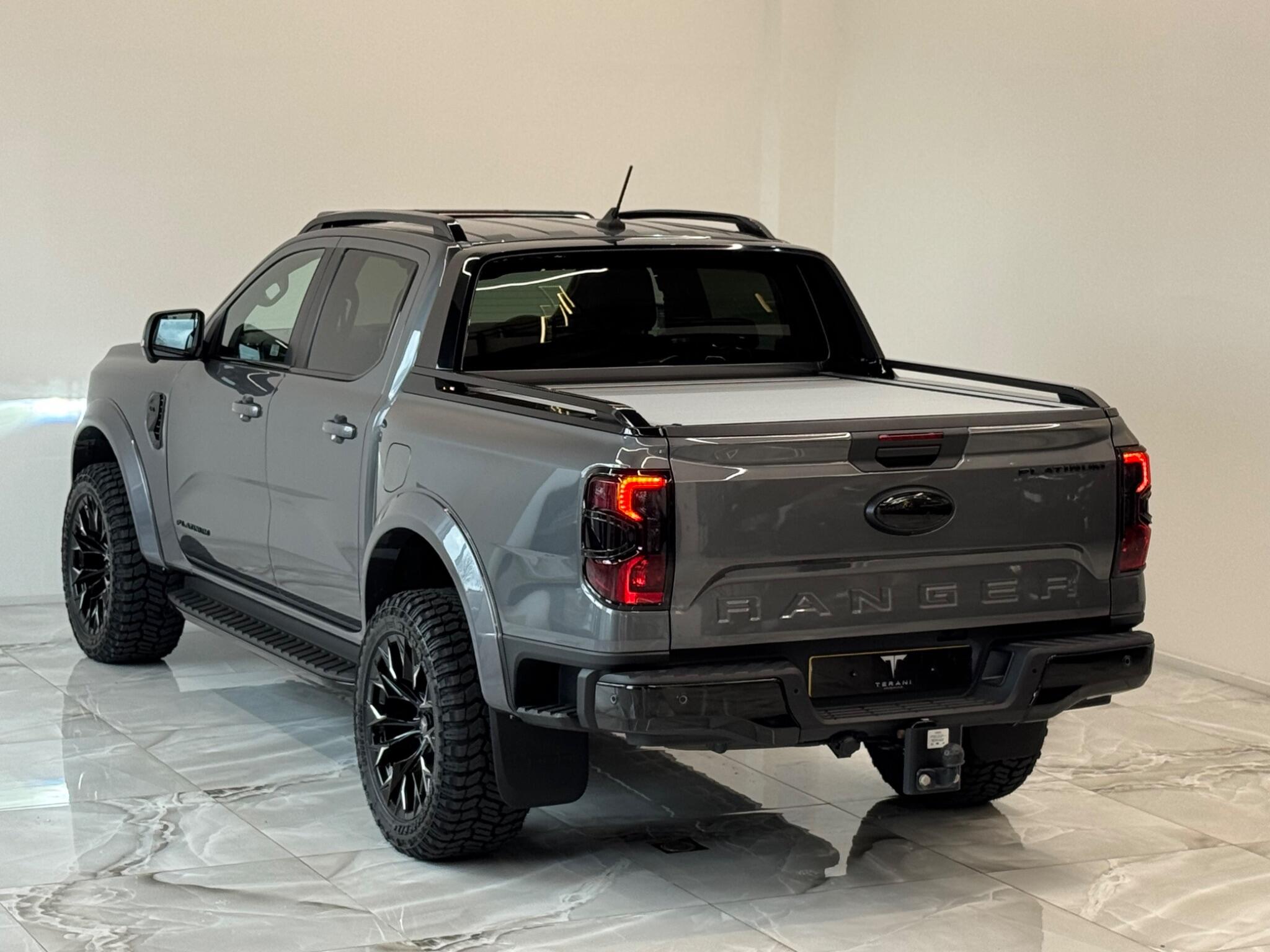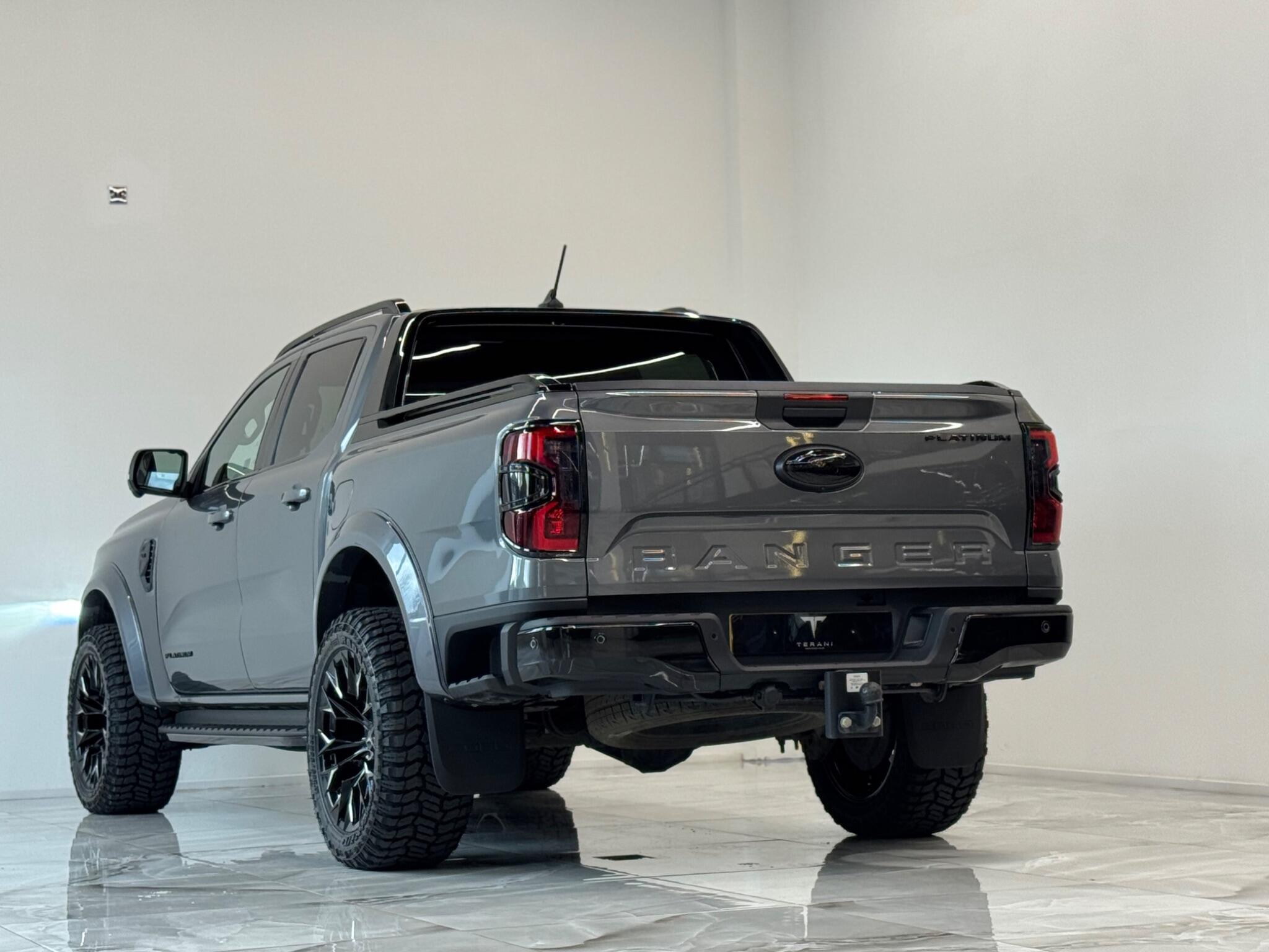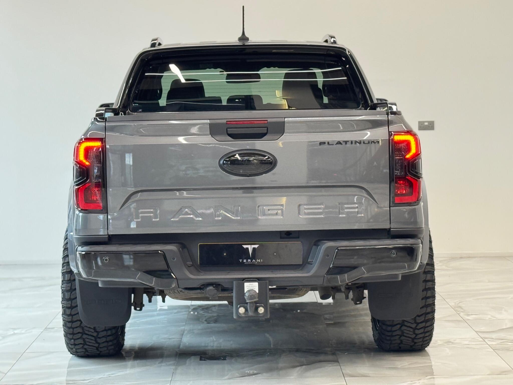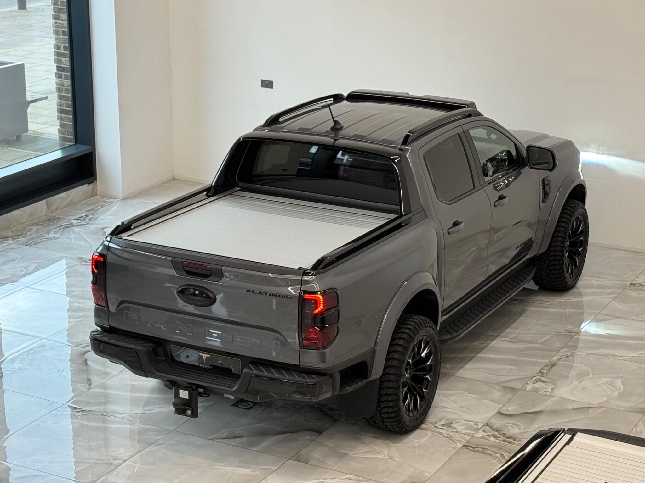 AVAILABLE IN STOCK UNDER CUSTOMISATION READY FOR 16TH MARCH|FORD RANGER 3.0 PLATINUM "CENTURIA" STONE GREY CUSTOMISED BY TERANI"""""" 1 OUT OF 1 IN UK""""""VIEWING STRONGLY ADVISED""""'MASSIVE SPEC""""AVAILABLE IN STOCK|£46990+VAT FINANCE 7.9% APR |COOLING/HEATED ELECTRIC SEATS|LED HEADLIGHTS|B&O SOUND SYSTEM|360 CAMERA AND PARK ASSIST|ELECTRIC ROLLER SHUTTER | ADAPTIVE CRUISE CONTROL|LANE ASSIST|ELECTRIC HEATED SEATS|APPLE CAR PLAY|HEATED STEERING WHEEL|REVERSE CAMERA |AUTO EMERGENCY BRAKE|AUTO HOLD|BLACK EXTERIOR PACK|WIDE ARCH KIT|OFF ROAD WHEELS|OFF ROAD MUD TYRES|LED ROOF LIGHT|UPGRADED LED INDICATING FOG LIGHTS|FRONT AND REAR LIGHTS PPF & GAURDS|CARBON UPGARDED INTERIOR TRIMS|FRONT BULL BAR..... VIEWINGS BY APPOINTMENT BASIS ONLY With exceptionally low mileage for its age, this 2023 Ford Ranger Platinum offers a superb ownership proposition. This four wheel drive, 3.0 litre diesel automatic pickup truck boasts a powerful 237 bhp engine and meets Euro 6 emission standards. It is equipped with the Technology Package 73, which includes Blind Spot Assistance, Adaptive Cruise Control, automatic headlights, and a 360 degree camera system for effortless parking. Further enhancing its practicality, it features front and rear parking sensors, a towbar, and a trailer tow class 1 rating, allowing for a substantial towing weight of 3500 kg. The Platinum trim level ensures a comfortable and convenient driving experience, highlighted by a heated steering wheel and passive keyless entry and start. The Power Pack 3 adds wireless phone charging, keeping your devices powered on the go. These features collectively demonstrate how this Ford Ranger Platinum surpasses other similar vehicles, offering advanced technology and premium comfort for both work and leisure.
