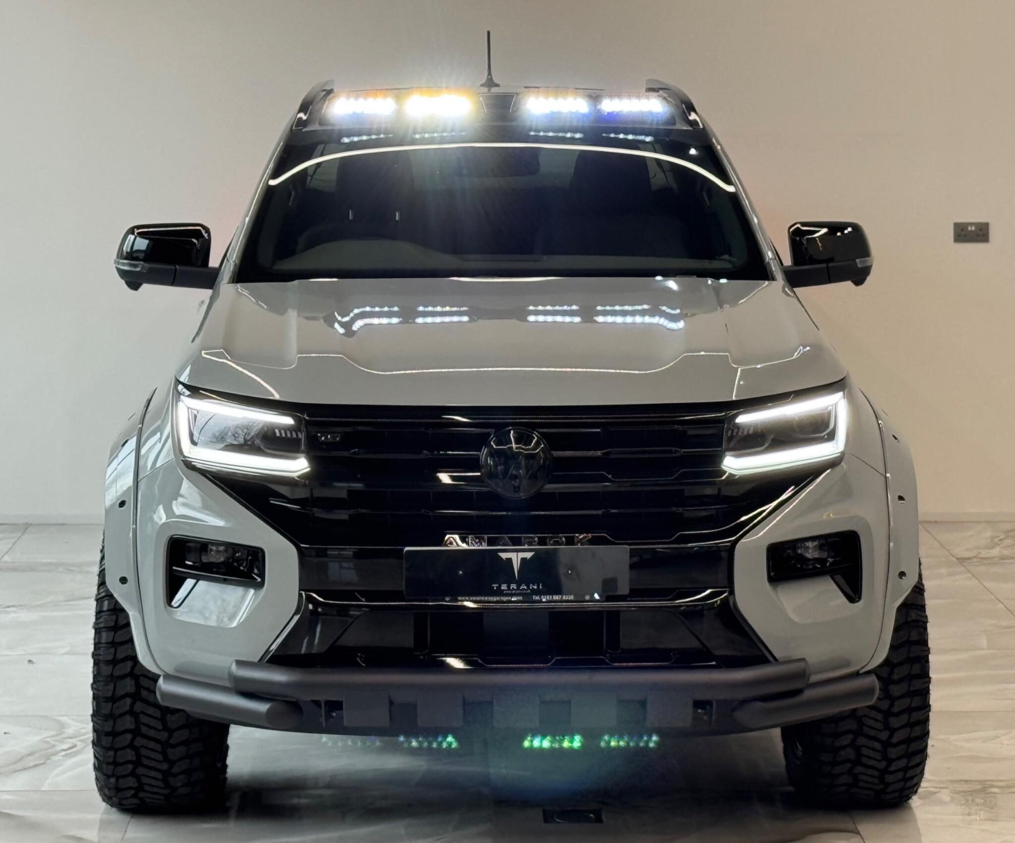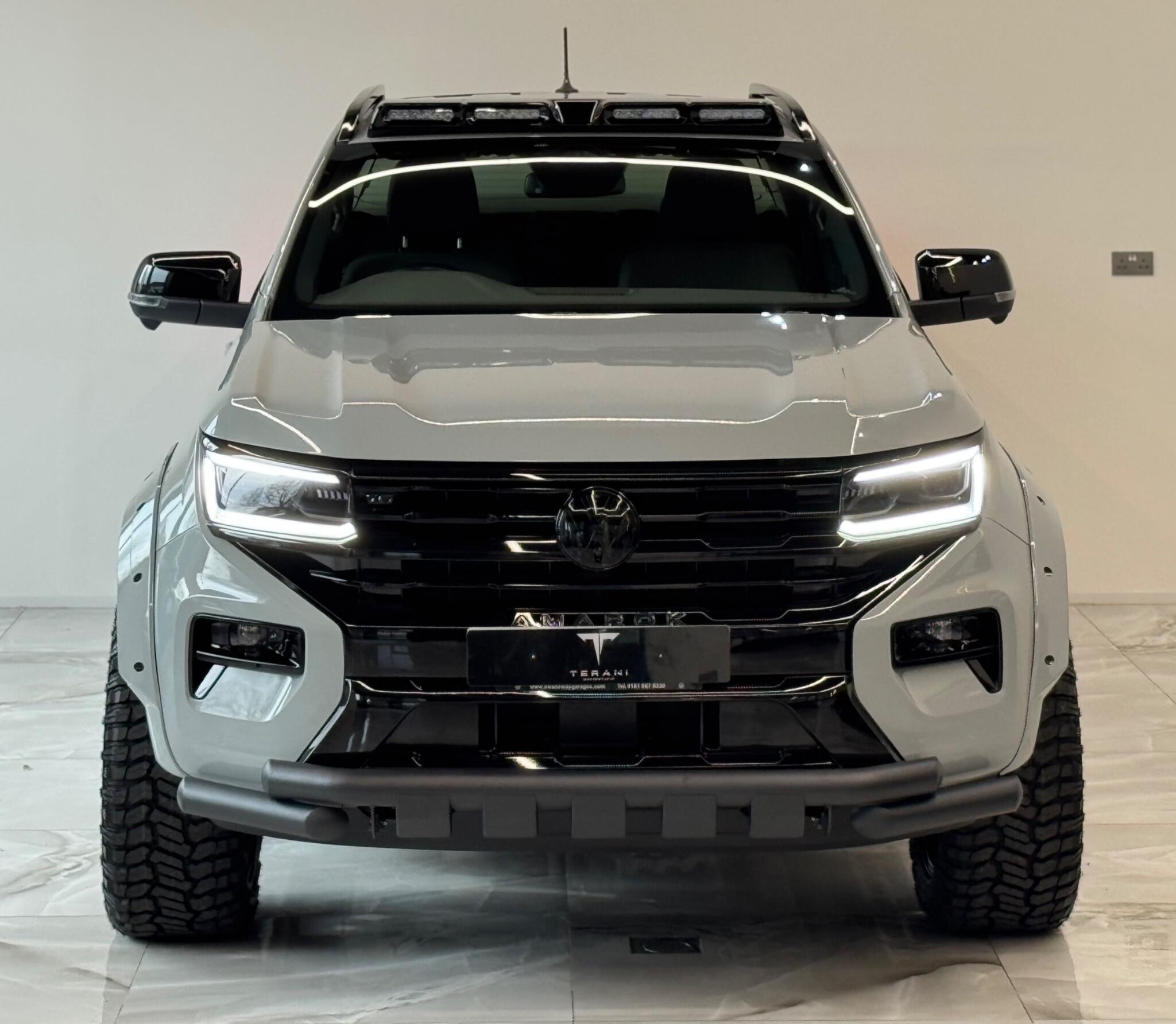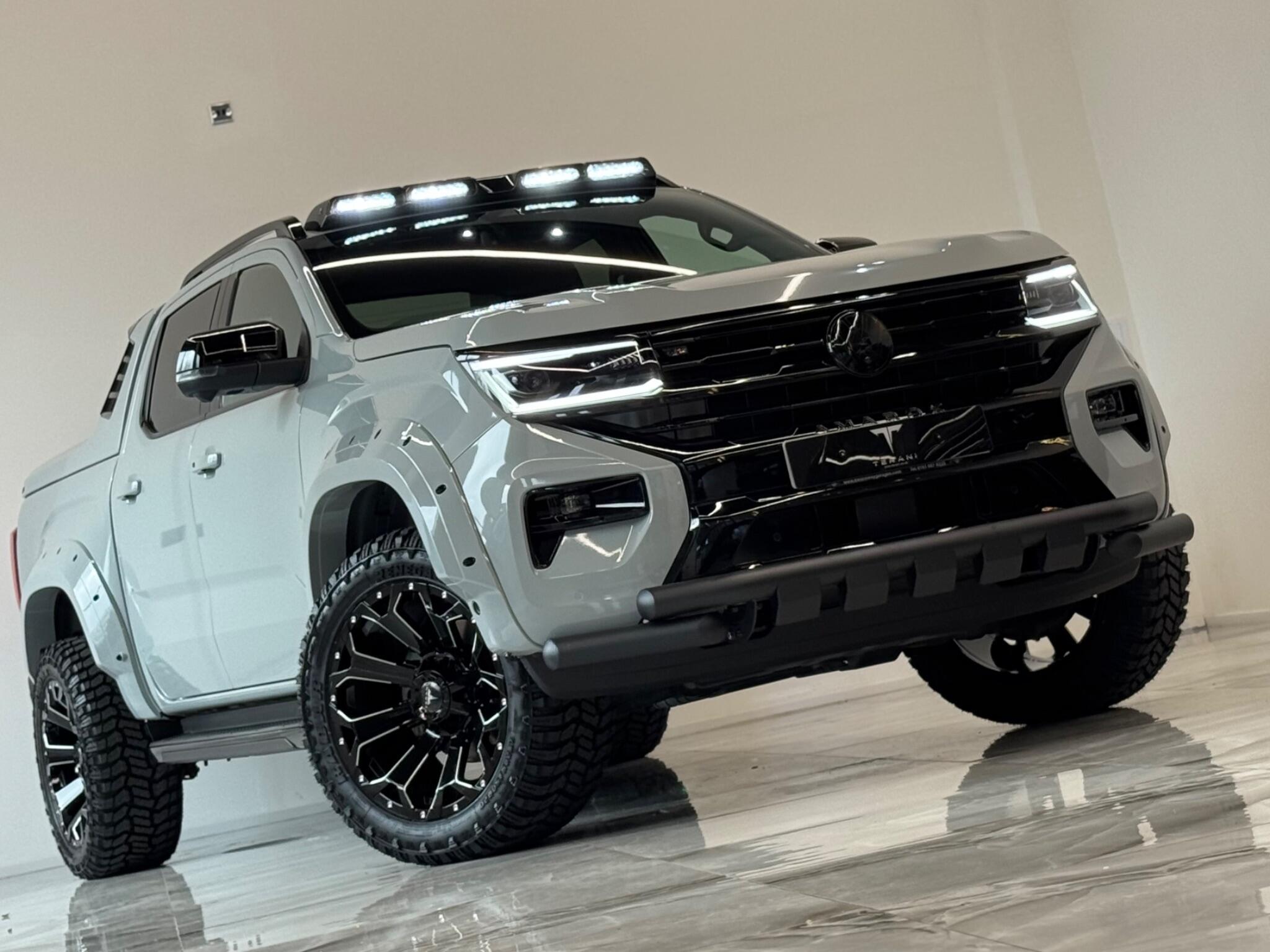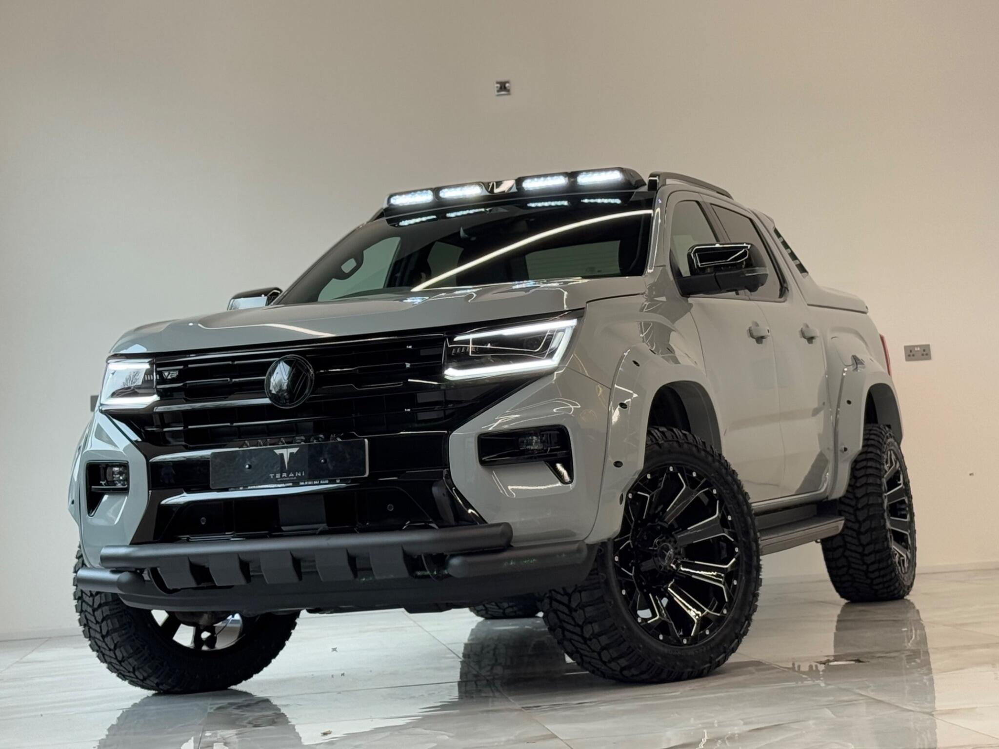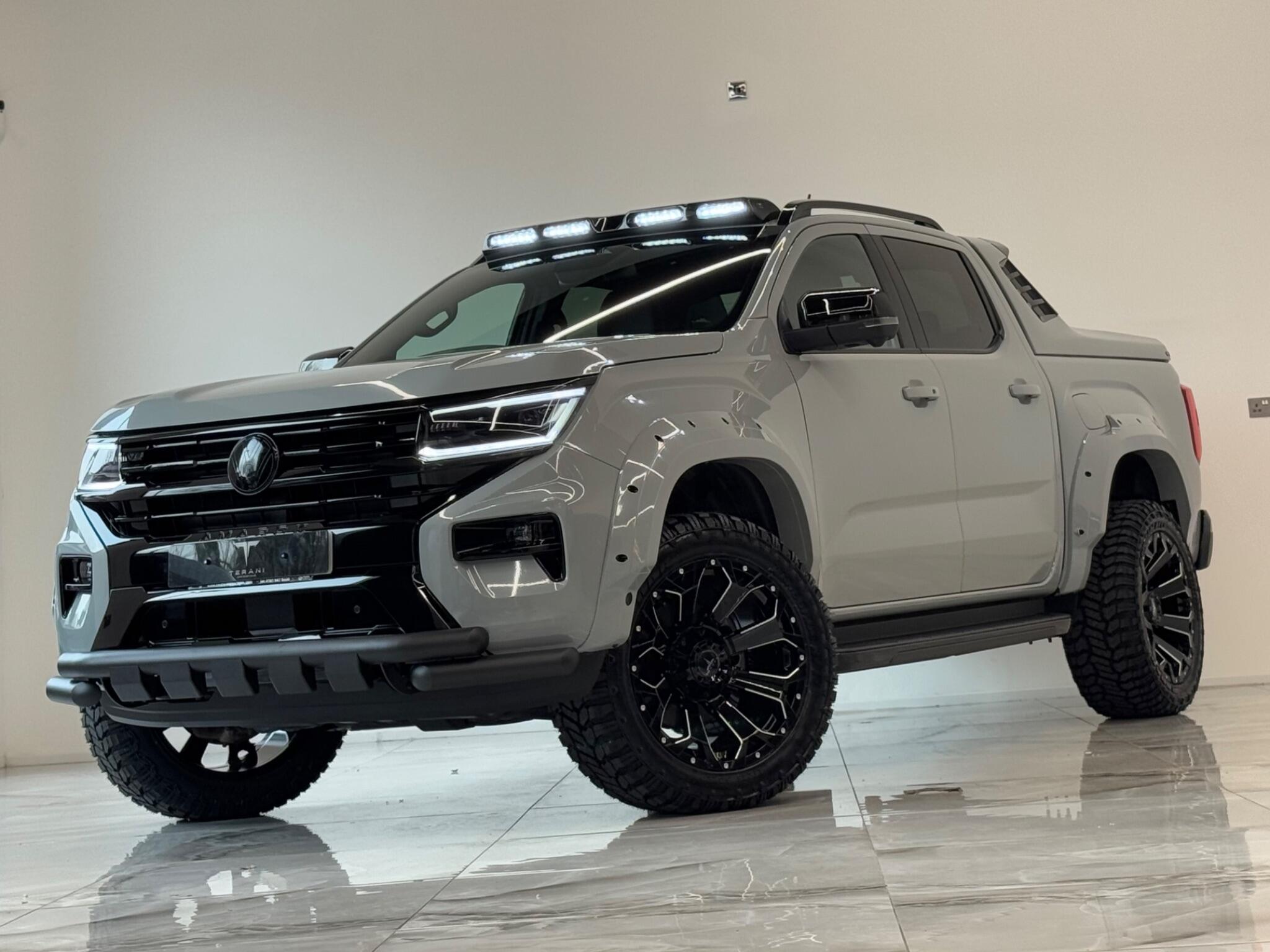 AVAILABLE IN STOCK|£47990 PLUS VAT|MASSIVE SPEC, WE ARE PROUD TO PRESENT THIS NEW VW AMAROK V6 "CENTURIA" CUSTOMISED BY TERANI"""""" 1 OUT OF 1 IN UK""""""VIEWING STRONGLY ADVISED""""'MASSIVE SPEC""""AVAILABLE '''''''|FINANCE|MANUFACTURE WARRANTY|20" OFF-ROAD WHEELS|OFF-ROAD TYRES|WIDE ARCH BODY KIT|BLACK EXTERIOR PACK|LED REMOTE CONTROL ROOF LIGHT| FRONT BLACK BULL BAR|BLACK EXTERIOR PACK|ELECTRIC HEATED SEATS|APPLE CAR PLAY|REAR SCR PREMIUM LIFT-UP COVER|MERIDIAN SOUND SYSTEM|360 CAMERA|WIRELESS CHARGER|LED HEADLIGHTS....VIEWINGS BY APPOINTMENTS ONLY.... Boasting exceptionally low mileage for its year, this 2024 Volkswagen Amarok is a standout example with only one owner from new. This Aventura derivative, powered by a robust 3.0 litre TDI V6 diesel engine producing 237 bhp, offers impressive performance and capability. Its Four Wheel Drive system ensures confident handling in various conditions, while the Euro 6 compliant engine meets modern emissions standards. With a substantial towing weight of 3500 kg, it is ready for demanding tasks. This Amarok is equipped with a suite of advanced features designed to enhance your driving experience. Enjoy immersive audio with the Harman Kardon Sound System, and effortless journeys thanks to the Predictive Speed Limiter and Adaptive Cruise Control, which also incorporates Dynamic Road Sign Display. Parking is made simple with Park Assist Plus, offering front and rear sensors along with rear traffic alert. The IQ.LIGHT LED Matrix headlamps are complemented by Advanced High Beam Control for optimal visibility, and the Leather Wrapped Multi Function Steering Wheel is heated for added comfort. These features collectively demonstrate a superior level of specification compared to other similar vehicles.