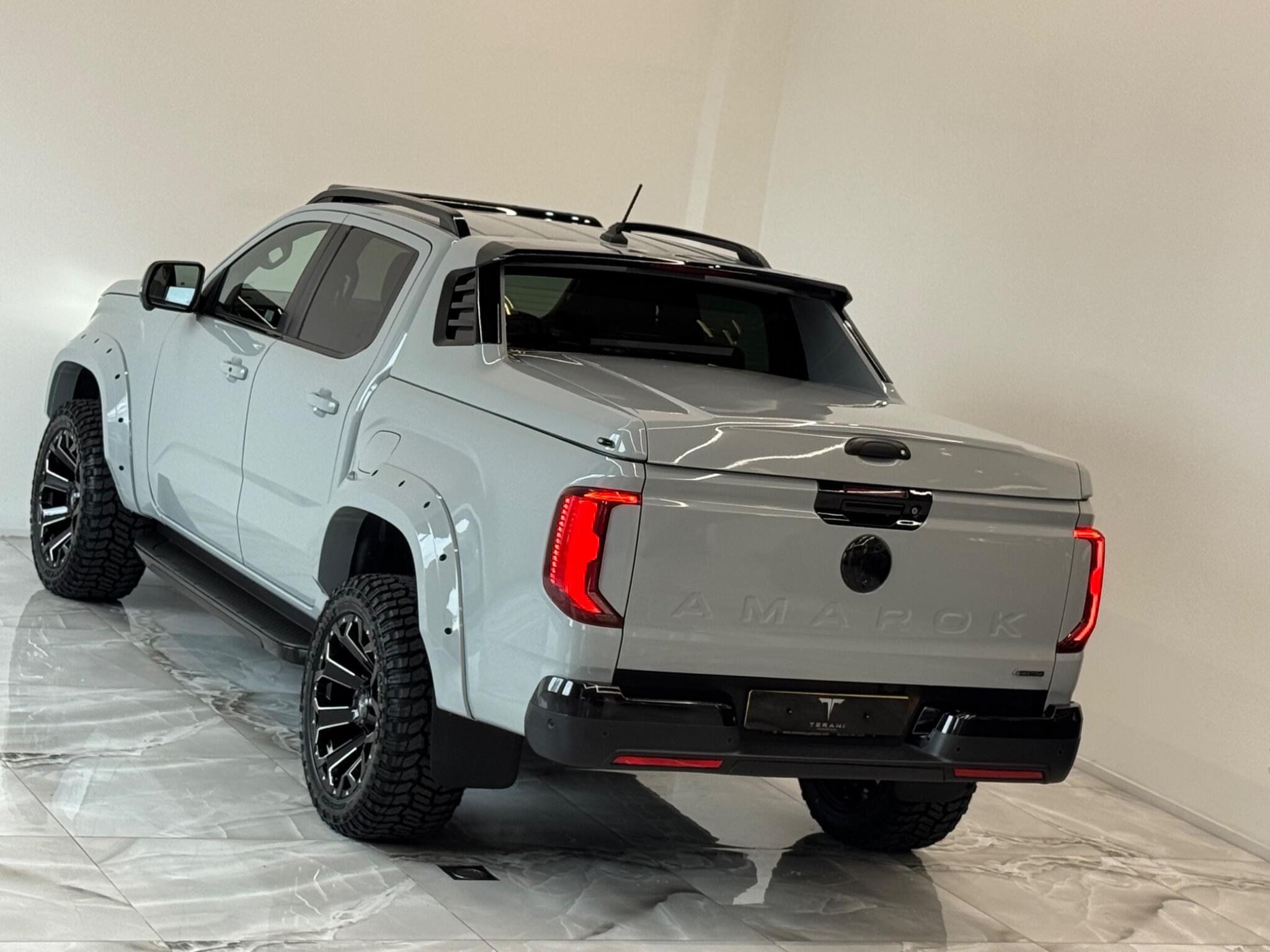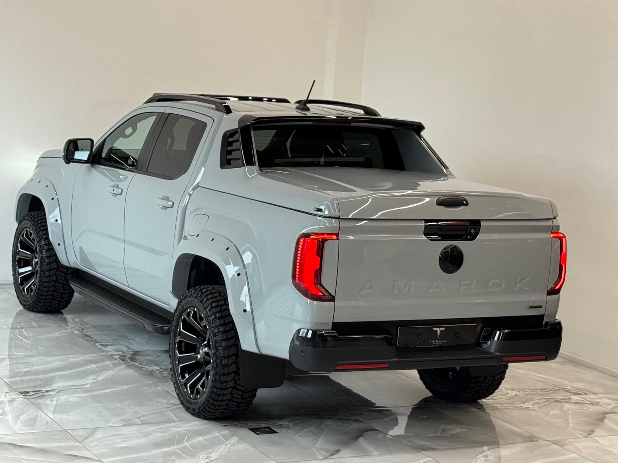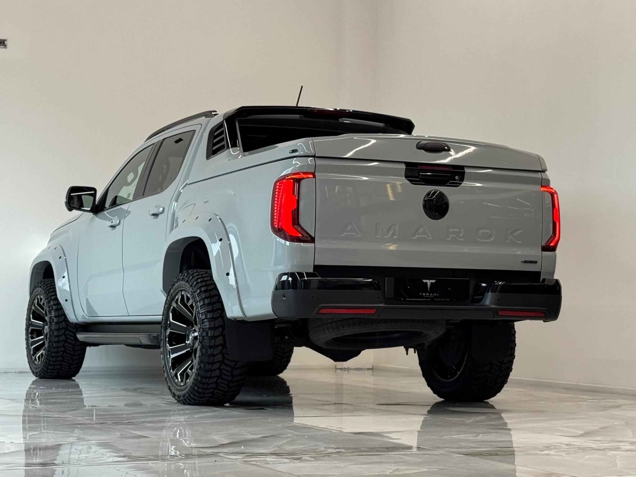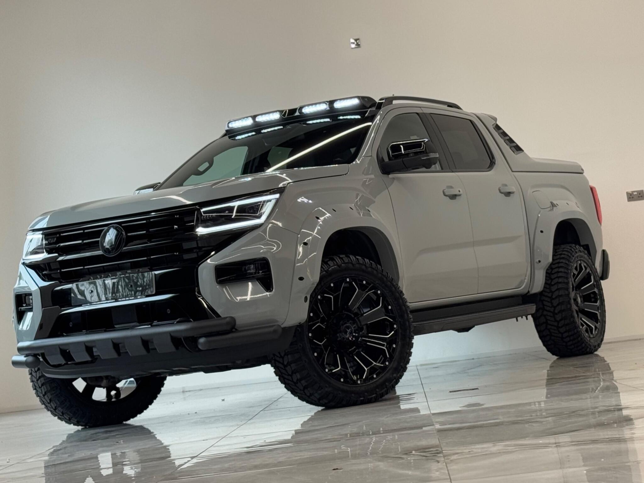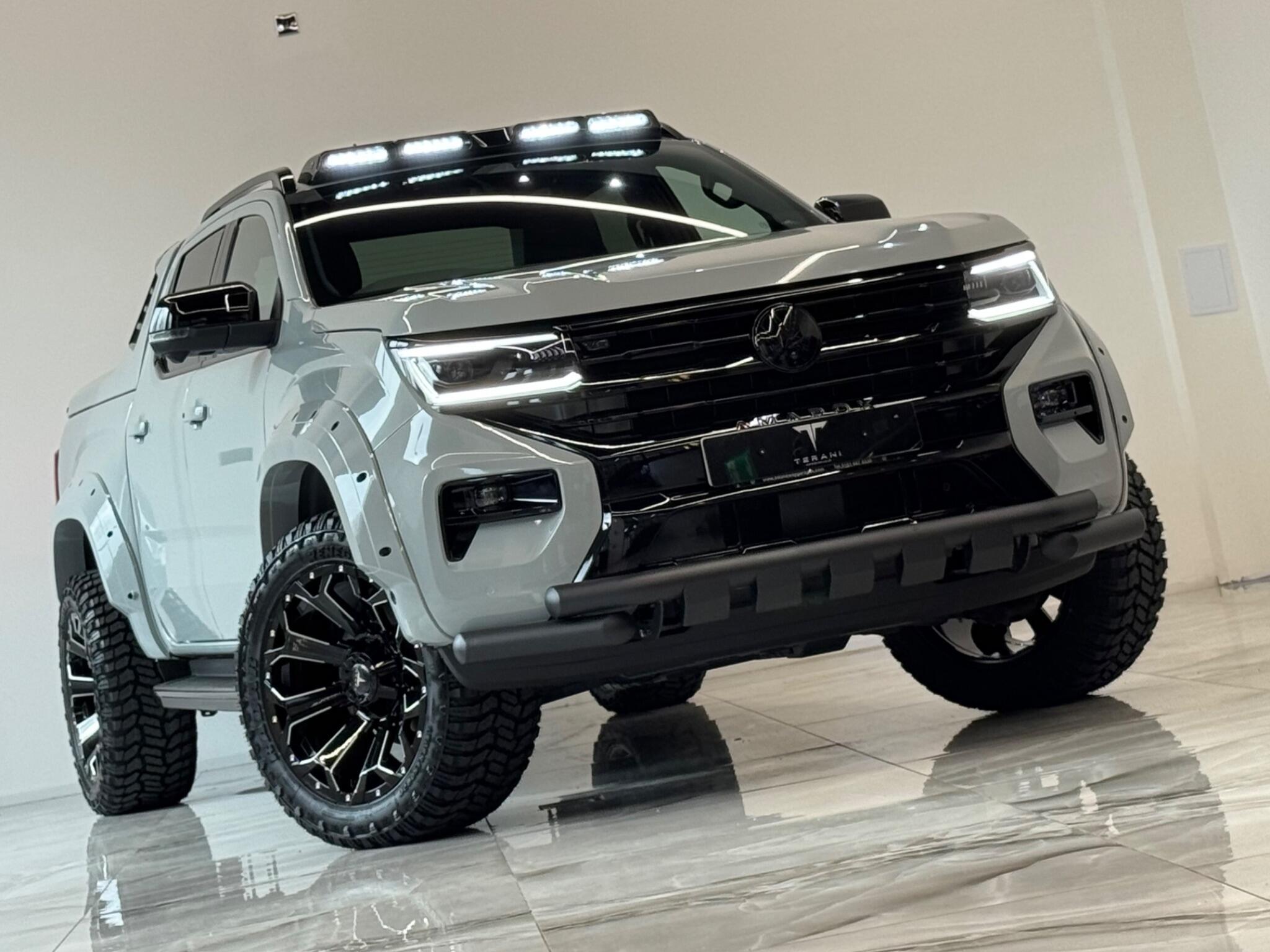 AVAILABLE IN STOCK|£47990 PLUS VAT|MASSIVE SPEC, WE ARE PROUD TO PRESENT THIS NEW VW AMAROK V6 "CENTURIA" CUSTOMISED BY TERANI"""""" 1 OUT OF 1 IN UK""""""VIEWING STRONGLY ADVISED""""'MASSIVE SPEC""""AVAILABLE '''''''|FINANCE|MANUFACTURE WARRANTY|20" OFF-ROAD WHEELS|OFF-ROAD TYRES|WIDE ARCH BODY KIT|BLACK EXTERIOR PACK|LED REMOTE CONTROL ROOF LIGHT| FRONT BLACK BULL BAR|BLACK EXTERIOR PACK|ELECTRIC HEATED SEATS|APPLE CAR PLAY|REAR SCR PREMIUM LIFT-UP COVER|MERIDIAN SOUND SYSTEM|360 CAMERA|WIRELESS CHARGER|LED HEADLIGHTS....VIEWINGS BY APPOINTMENTS ONLY.... Boasting exceptionally low mileage for its year, this 2024 Volkswagen Amarok is a standout example with only one owner from new. This Aventura derivative, powered by a robust 3.0 litre TDI V6 diesel engine producing 237 bhp, offers impressive performance and capability. Its Four Wheel Drive system ensures confident handling in various conditions, while the Euro 6 compliant engine meets modern emissions standards. With a substantial towing weight of 3500 kg, it is ready for demanding tasks. This Amarok is equipped with a suite of advanced features designed to enhance your driving experience. Enjoy immersive audio with the Harman Kardon Sound System, and effortless journeys thanks to the Predictive Speed Limiter and Adaptive Cruise Control, which also incorporates Dynamic Road Sign Display. Parking is made simple with Park Assist Plus, offering front and rear sensors along with rear traffic alert. The IQ.LIGHT LED Matrix headlamps are complemented by Advanced High Beam Control for optimal visibility, and the Leather Wrapped Multi Function Steering Wheel is heated for added comfort. These features collectively demonstrate a superior level of specification compared to other similar vehicles.