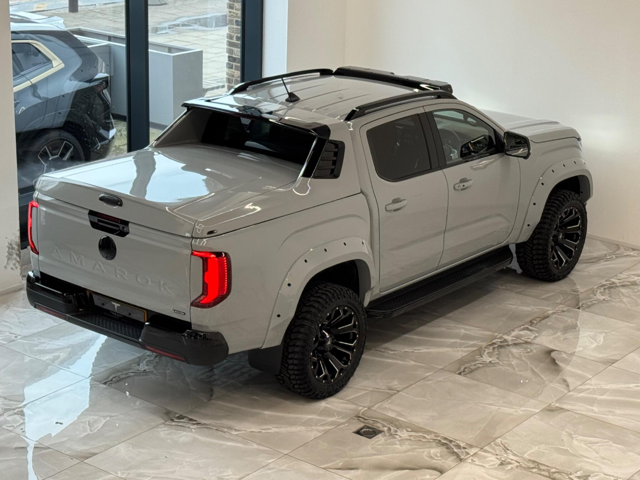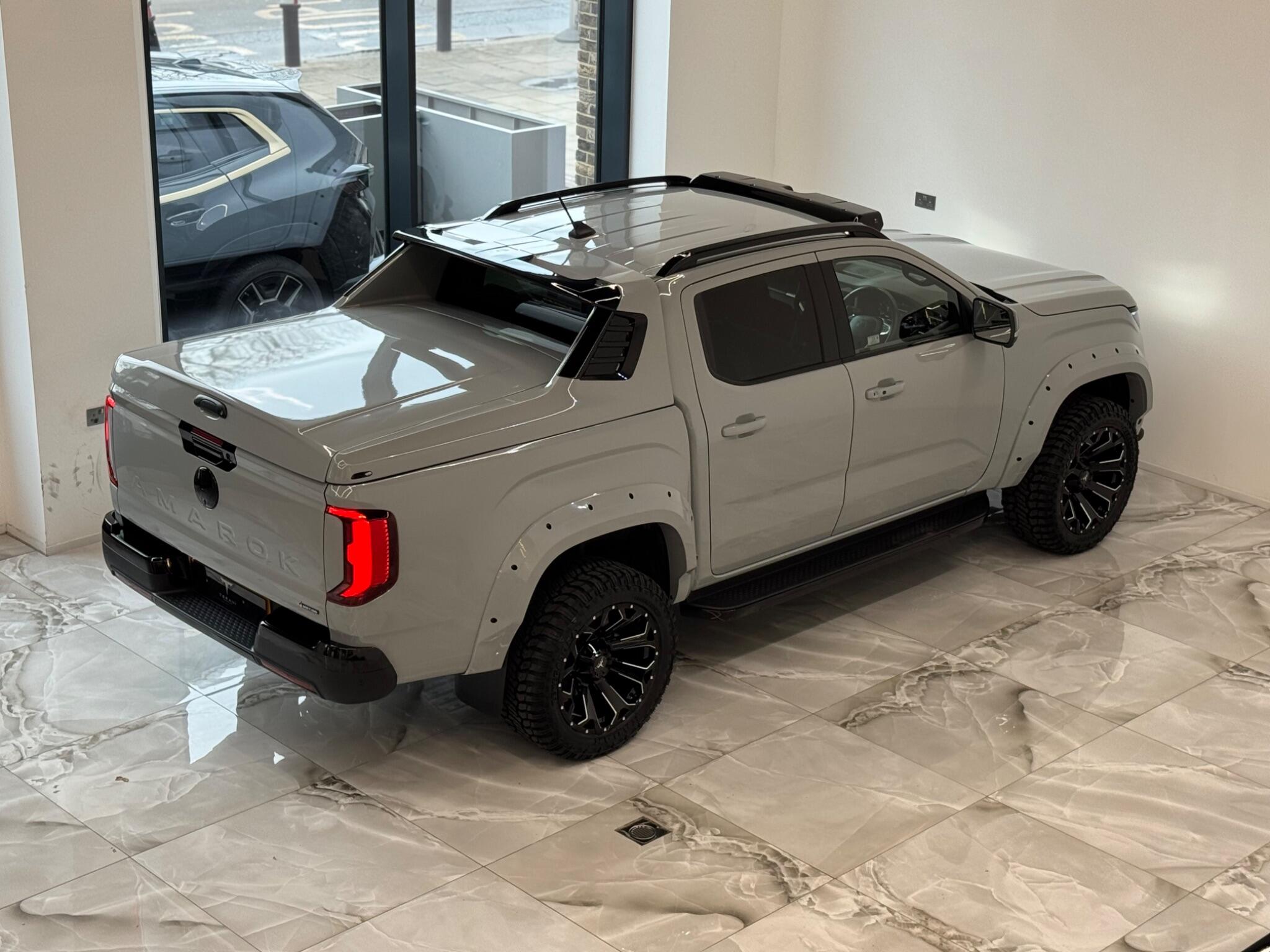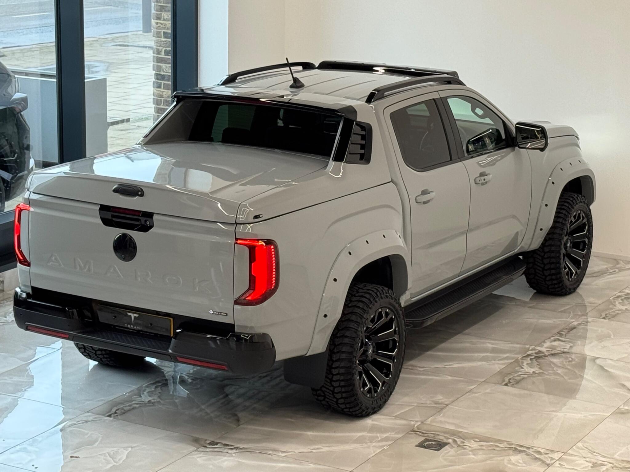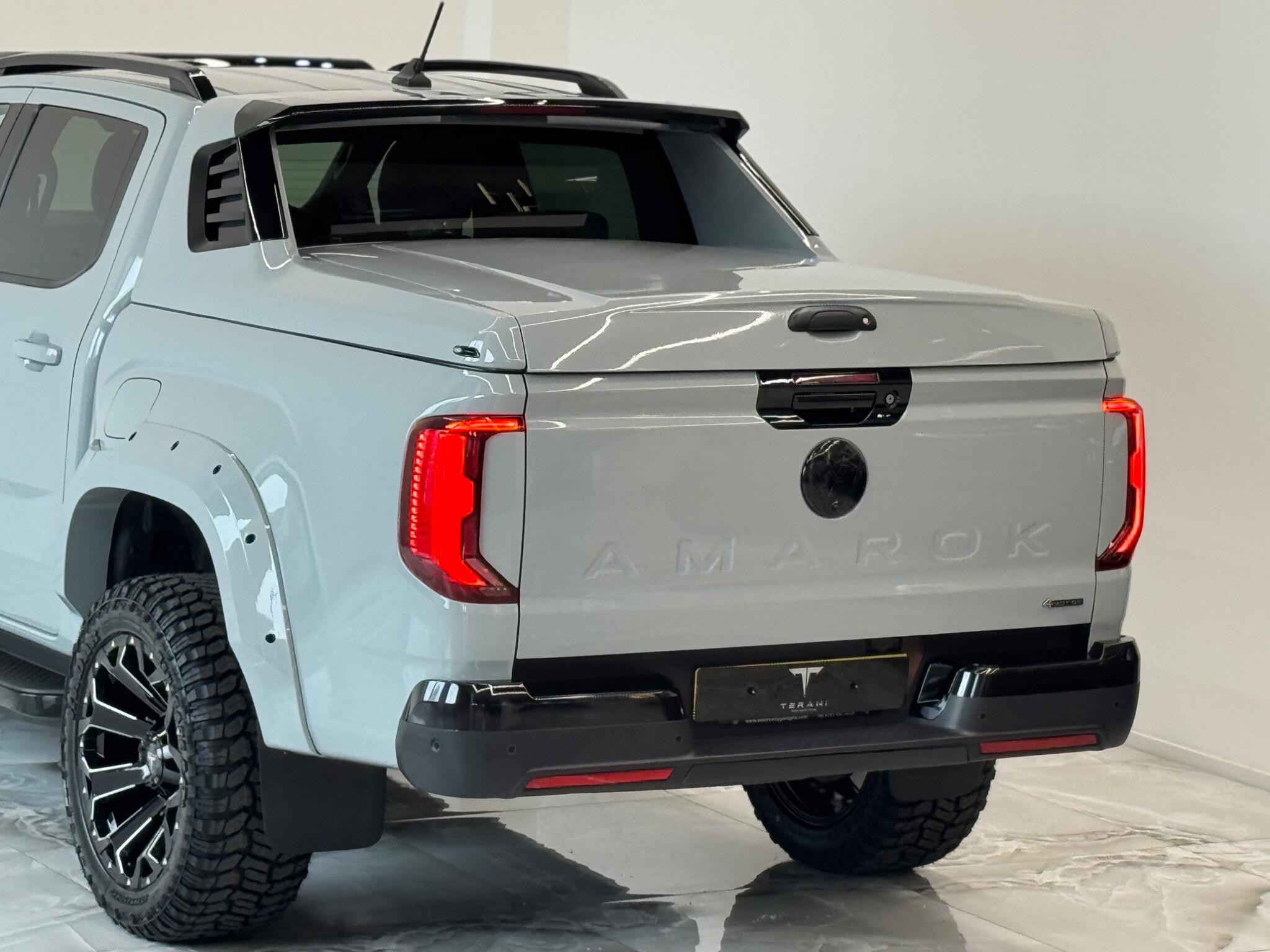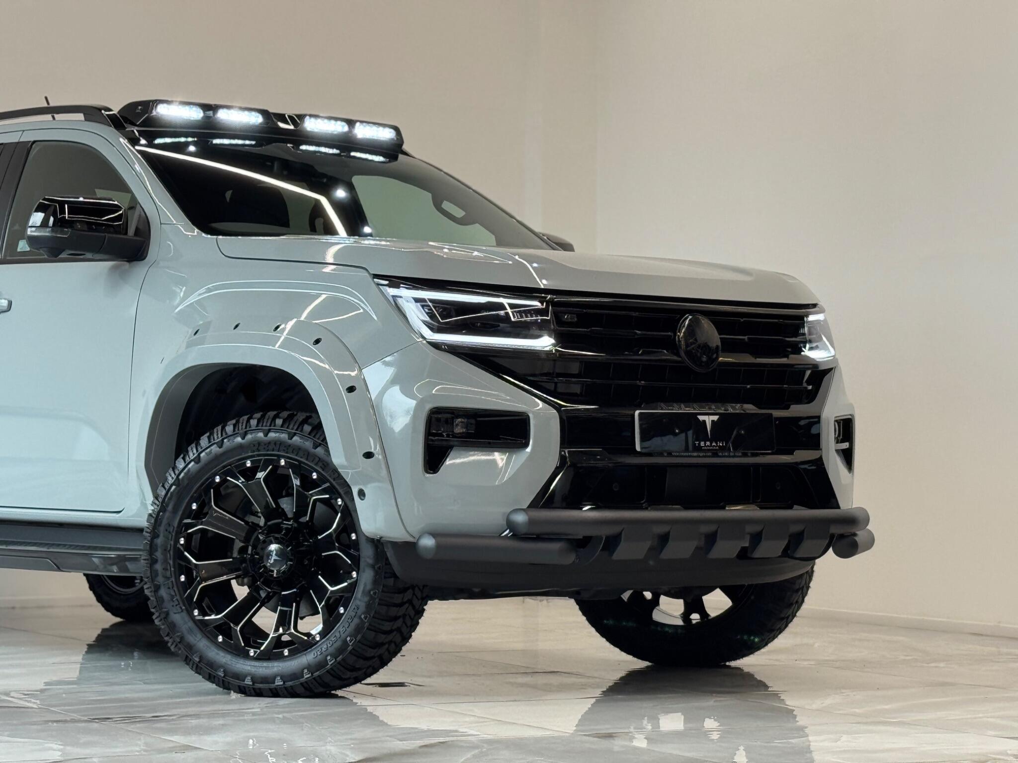 AVAILABLE IN STOCK|£47990 PLUS VAT|MASSIVE SPEC, WE ARE PROUD TO PRESENT THIS NEW VW AMAROK V6 "CENTURIA" CUSTOMISED BY TERANI"""""" 1 OUT OF 1 IN UK""""""VIEWING STRONGLY ADVISED""""'MASSIVE SPEC""""AVAILABLE '''''''|FINANCE|MANUFACTURE WARRANTY|20" OFF-ROAD WHEELS|OFF-ROAD TYRES|WIDE ARCH BODY KIT|BLACK EXTERIOR PACK|LED REMOTE CONTROL ROOF LIGHT| FRONT BLACK BULL BAR|BLACK EXTERIOR PACK|ELECTRIC HEATED SEATS|APPLE CAR PLAY|REAR SCR PREMIUM LIFT-UP COVER|MERIDIAN SOUND SYSTEM|360 CAMERA|WIRELESS CHARGER|LED HEADLIGHTS....VIEWINGS BY APPOINTMENTS ONLY.... Boasting exceptionally low mileage for its year, this 2024 Volkswagen Amarok is a standout example with only one owner from new. This Aventura derivative, powered by a robust 3.0 litre TDI V6 diesel engine producing 237 bhp, offers impressive performance and capability. Its Four Wheel Drive system ensures confident handling in various conditions, while the Euro 6 compliant engine meets modern emissions standards. With a substantial towing weight of 3500 kg, it is ready for demanding tasks. This Amarok is equipped with a suite of advanced features designed to enhance your driving experience. Enjoy immersive audio with the Harman Kardon Sound System, and effortless journeys thanks to the Predictive Speed Limiter and Adaptive Cruise Control, which also incorporates Dynamic Road Sign Display. Parking is made simple with Park Assist Plus, offering front and rear sensors along with rear traffic alert. The IQ.LIGHT LED Matrix headlamps are complemented by Advanced High Beam Control for optimal visibility, and the Leather Wrapped Multi Function Steering Wheel is heated for added comfort. These features collectively demonstrate a superior level of specification compared to other similar vehicles.