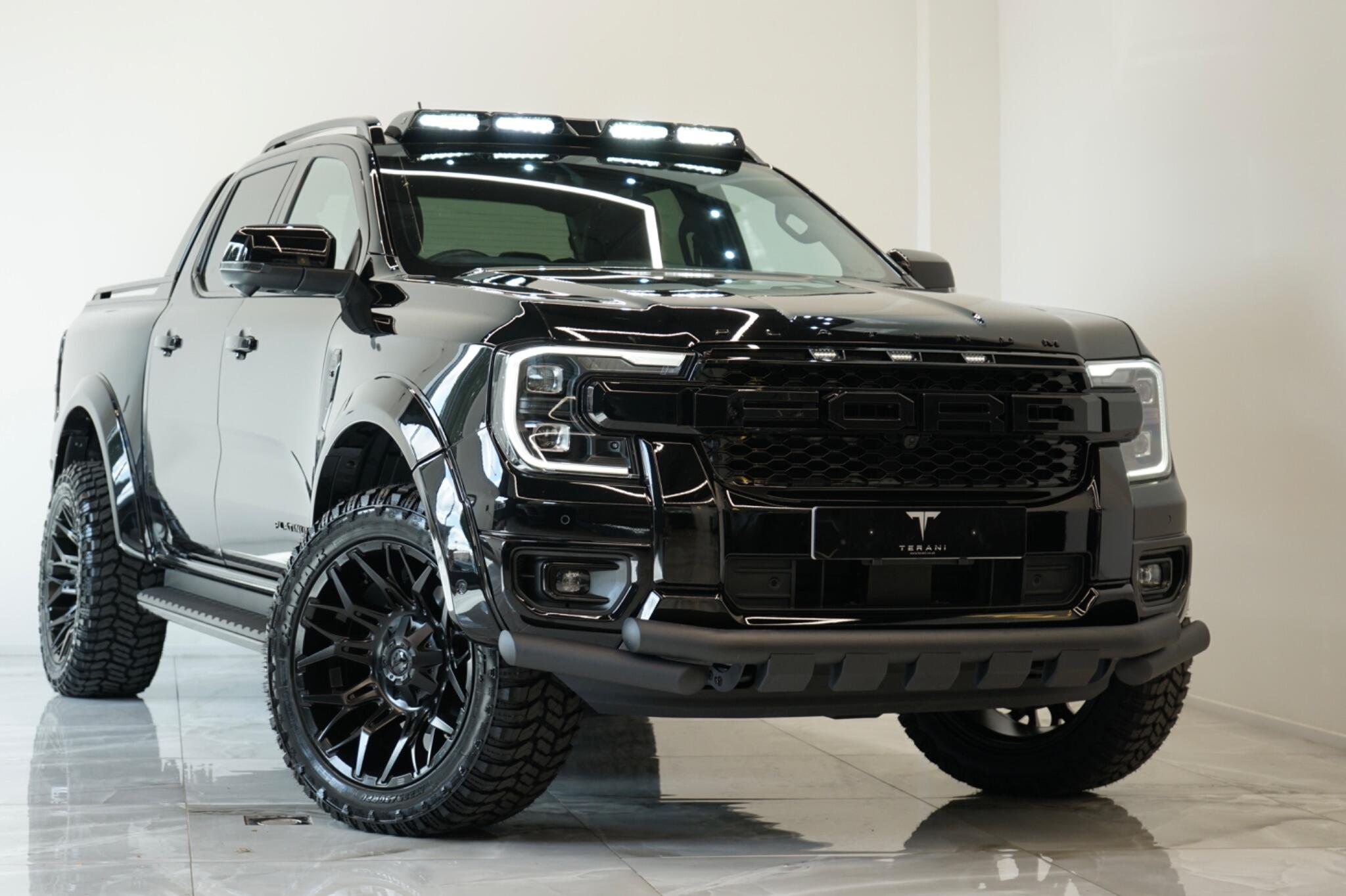 UNDER OFFER.....FORD RANGER 3.0 PLATINUM "CENTURIA" IN BLACK CUSTOMISED BY TERANI"""""" 1 OUT OF 1 IN UK""""""VIEWING STRONGLY ADVISED""""'MASSIVE SPEC""""AVAILABLE IN STOCK|£42990+VAT FINANCE 7.9% APR |COOLING/HEATED ELECTRIC SEATS|LED HEADLIGHTS|B&O SOUND SYSTEM|360 CAMERA AND PARK ASSIST|ELECTRIC ROLLER SHUTTER | ADAPTIVE CRUISE CONTROL|LANE ASSIST|ELECTRIC HEATED SEATS|APPLE CAR PLAY|HEATED STEERING WHEEL|REVERSE CAMERA |AUTO EMERGENCY BRAKE|AUTO HOLD|BLACK EXTERIOR PACK|WIDE ARCH KIT|OFF ROAD WHEELS|OFF ROAD MUD TYRES|LED ROOF LIGHT|UPGRADED LED INDICATING FOG LIGHTS|FRONT AND REAR LIGHTS PPF & GAURDS|CARBON UPGARDED INTERIOR TRIMS|FRONT BULL BAR..... VIEWINGS BY APPOINTMENT BASIS ONLY